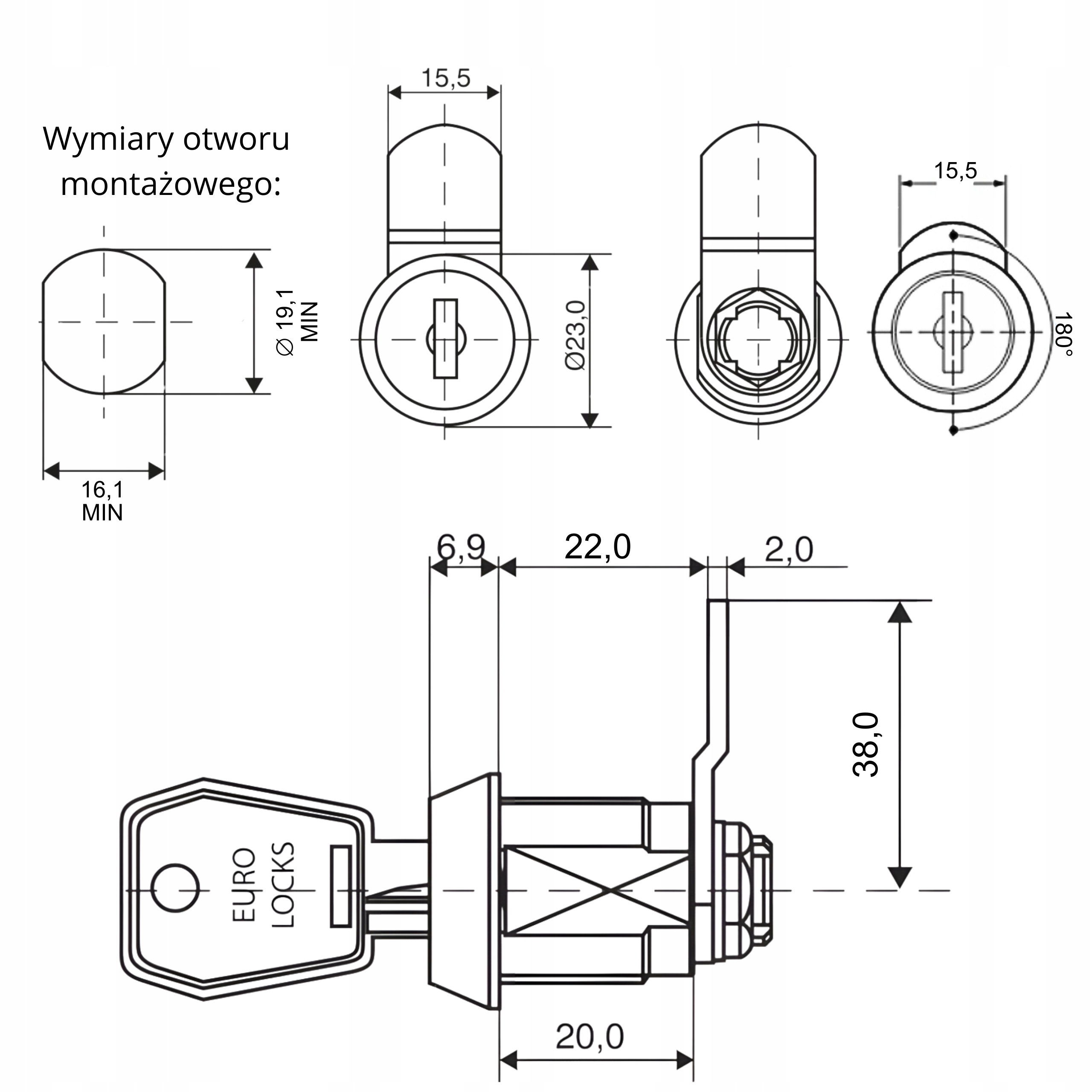 Zamek krzywkowy EURO-LOCKS B671 – 19x20 mm