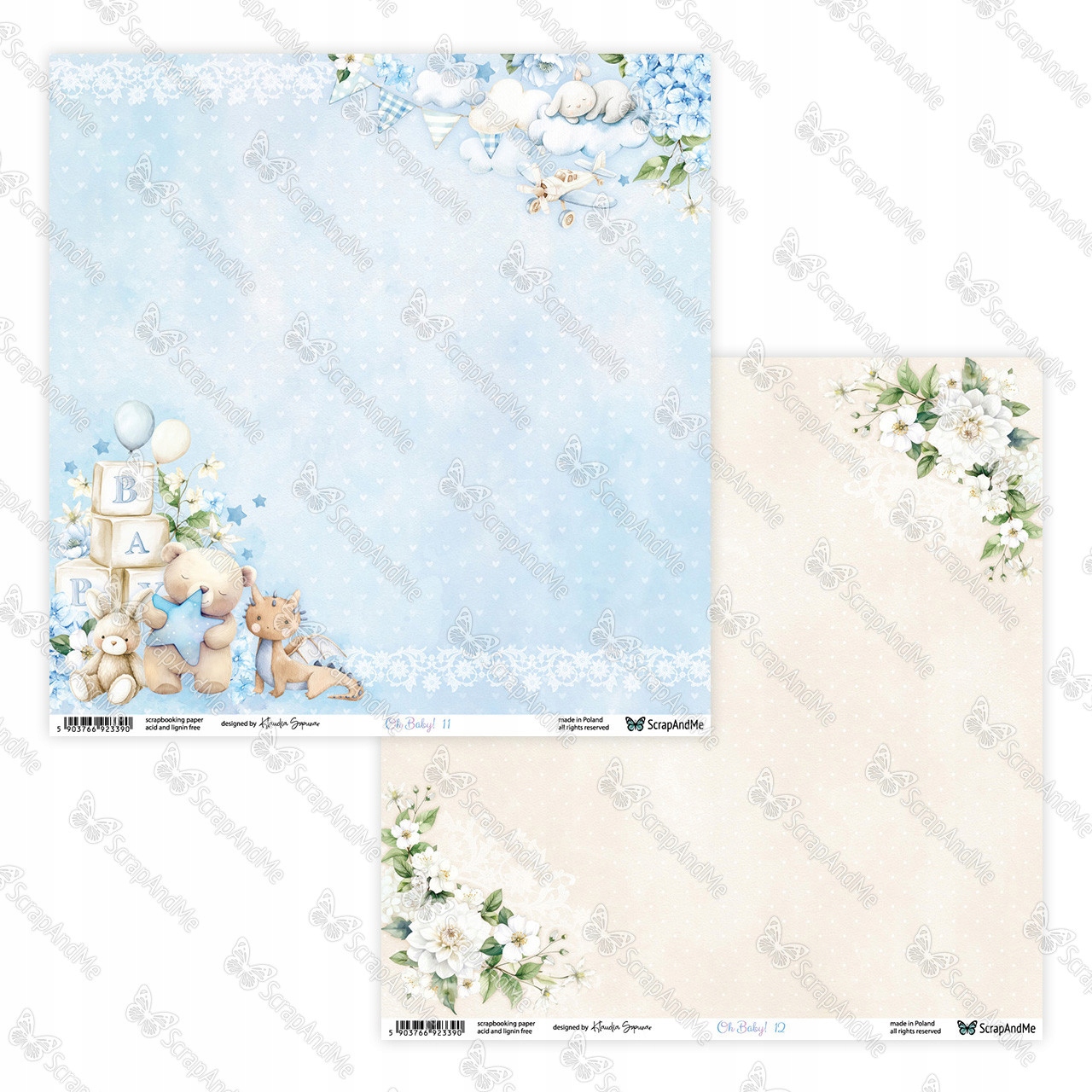 Stwórz wyjątkowe, dziecięce projekty z zestawem dwustronnych papierów do scrapbookingu z kolekcji Oh, Baby. Każdy arkusz został zaprojektowany, aby wzbogacić Twoje rękodzieło o wzory idealne na kartki o męskiej tematyce, albumy, dekoracje oraz inne projekty np. w technice mix-media.