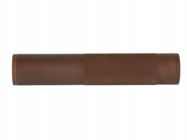 Tłumik w całości wykonany z aluminium w środku, którego znajduje się materiał tłumiący. Produkt pasuje do replik, których lufa zakończona jest gwintem prawoskrętnym lub lewoskrętnym o średnicy 14 mm.