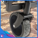 Czy wózek sprawdzi się na plaży? Tak, szerokie bieżnikowane koła doskonale radzą sobie na piasku i nierównym terenie.