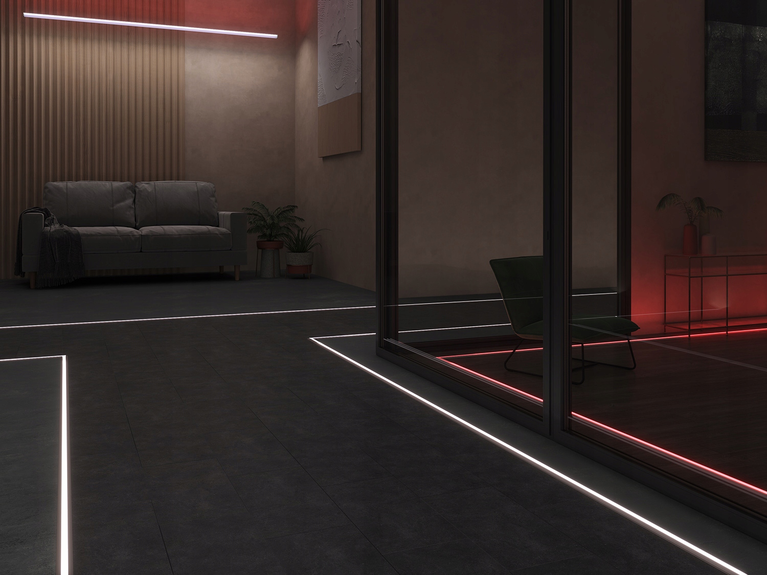 ⏺ Profil wpuszczany dzięki zastosowaniu mlecznego klosza, pozwala uzyskać jednolitą linię światła na całej powierzchni.