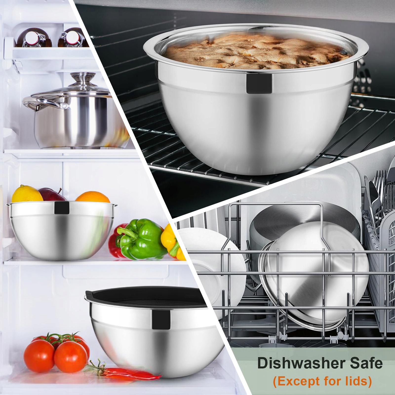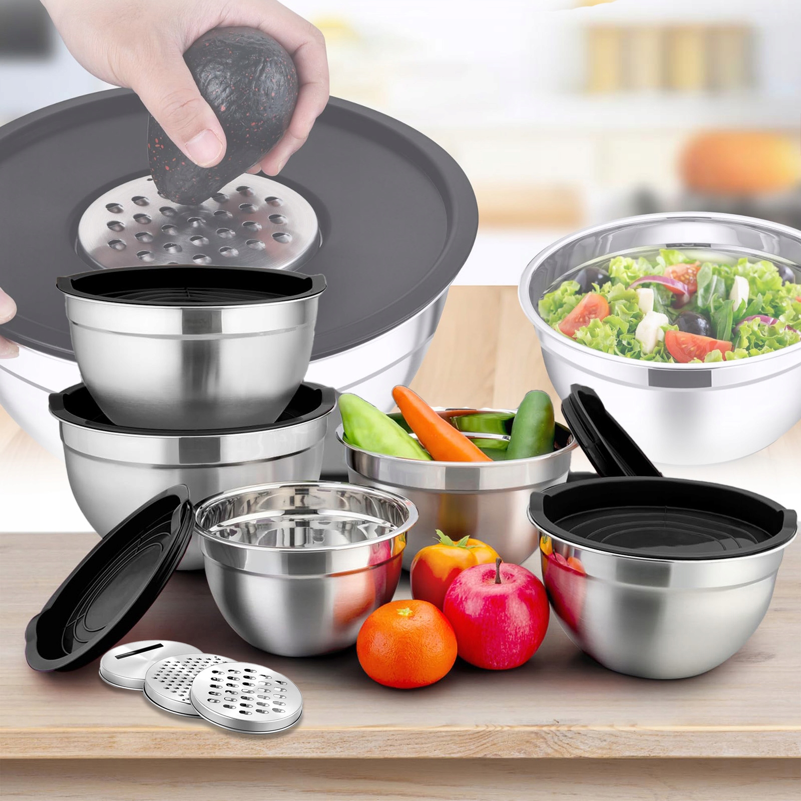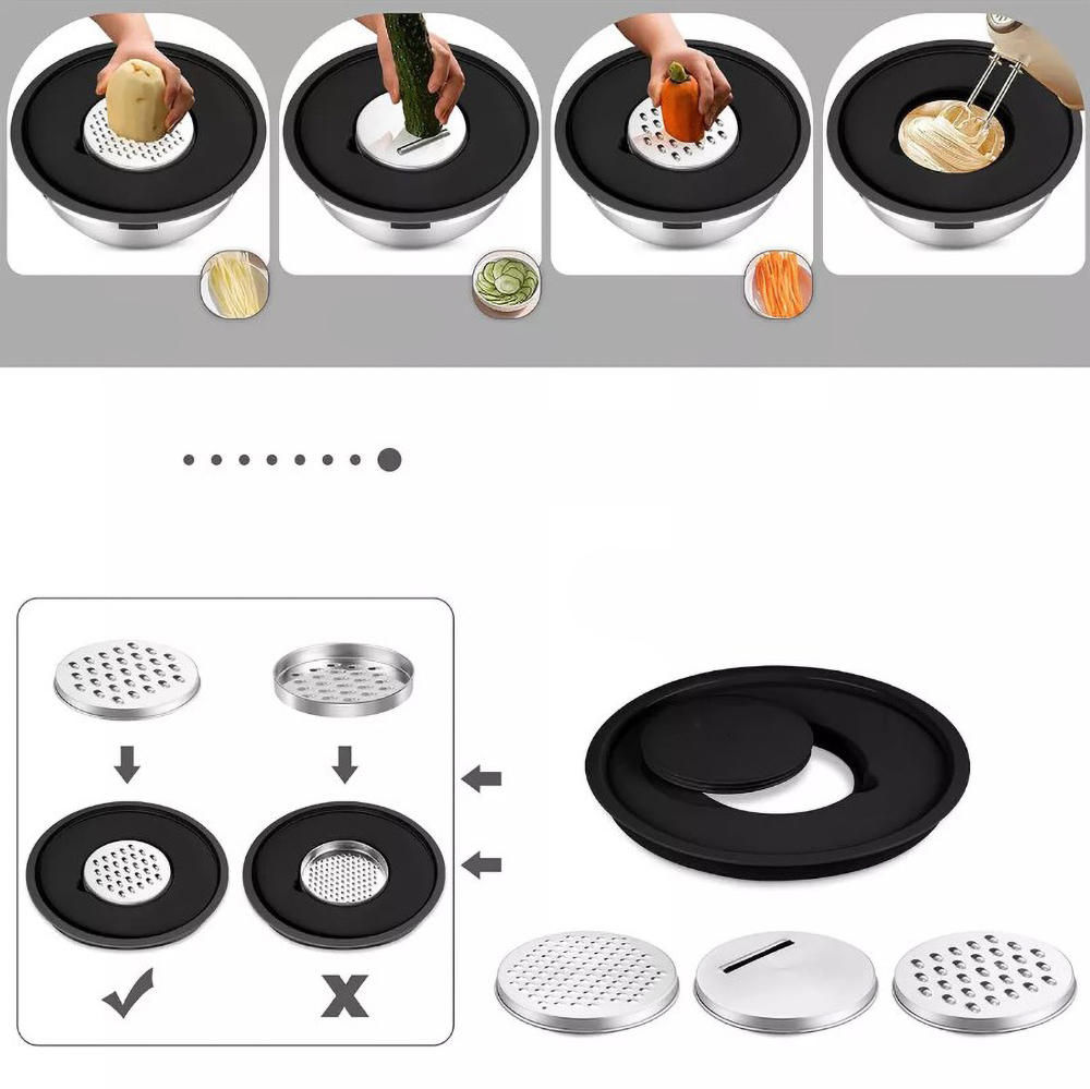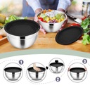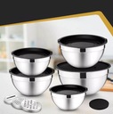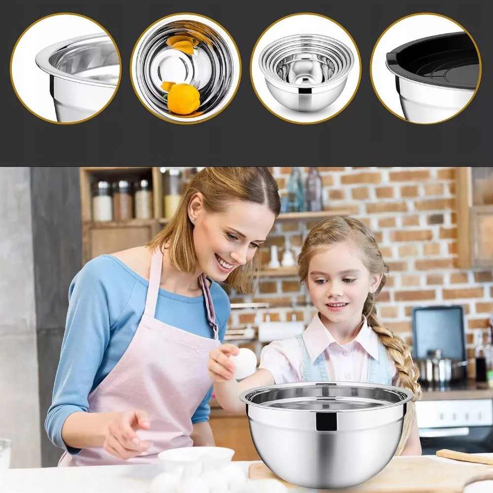 ➡️W zestawie - 5-częściowa miska sałatkowa z pokrywką (4 qt/4,5 l, 2,5 qt/2,7 l, 1,5 qt/1,6 l, 1 qt/1,1 l, 0,67 qt/0,7 l), w zestawie 3 szatkownice/nożyce.