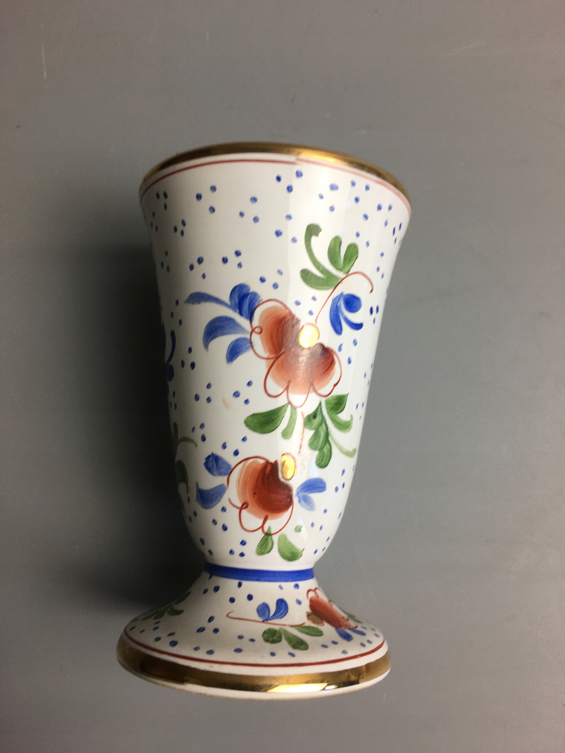 Высокая чашка с блюдцем и кружка на ножке из бургундского фаянса Clamecy.
