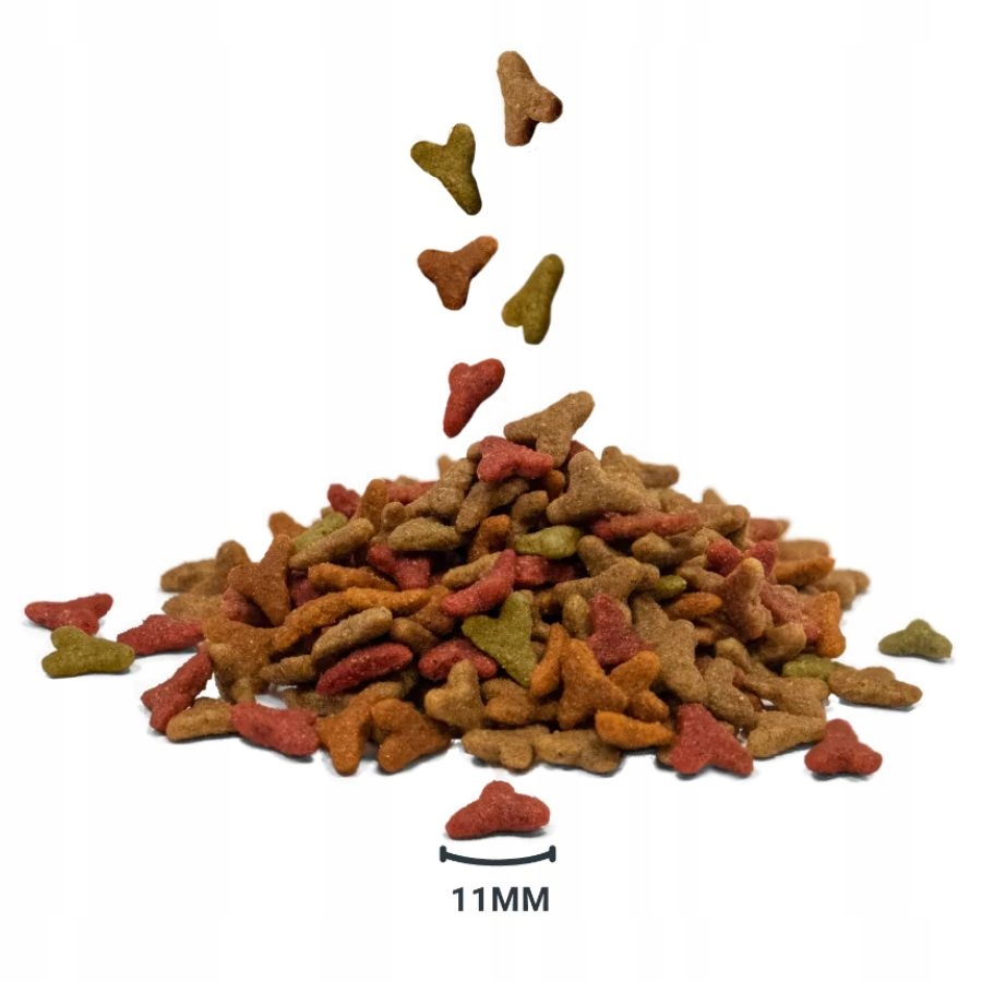 Skład: ziarna zbóż; mięso i produkty odzwierzęce; oleje i tłuszcze; substancje mineralne; produkty roślinne; ryby i produkty rybne; drożdże.