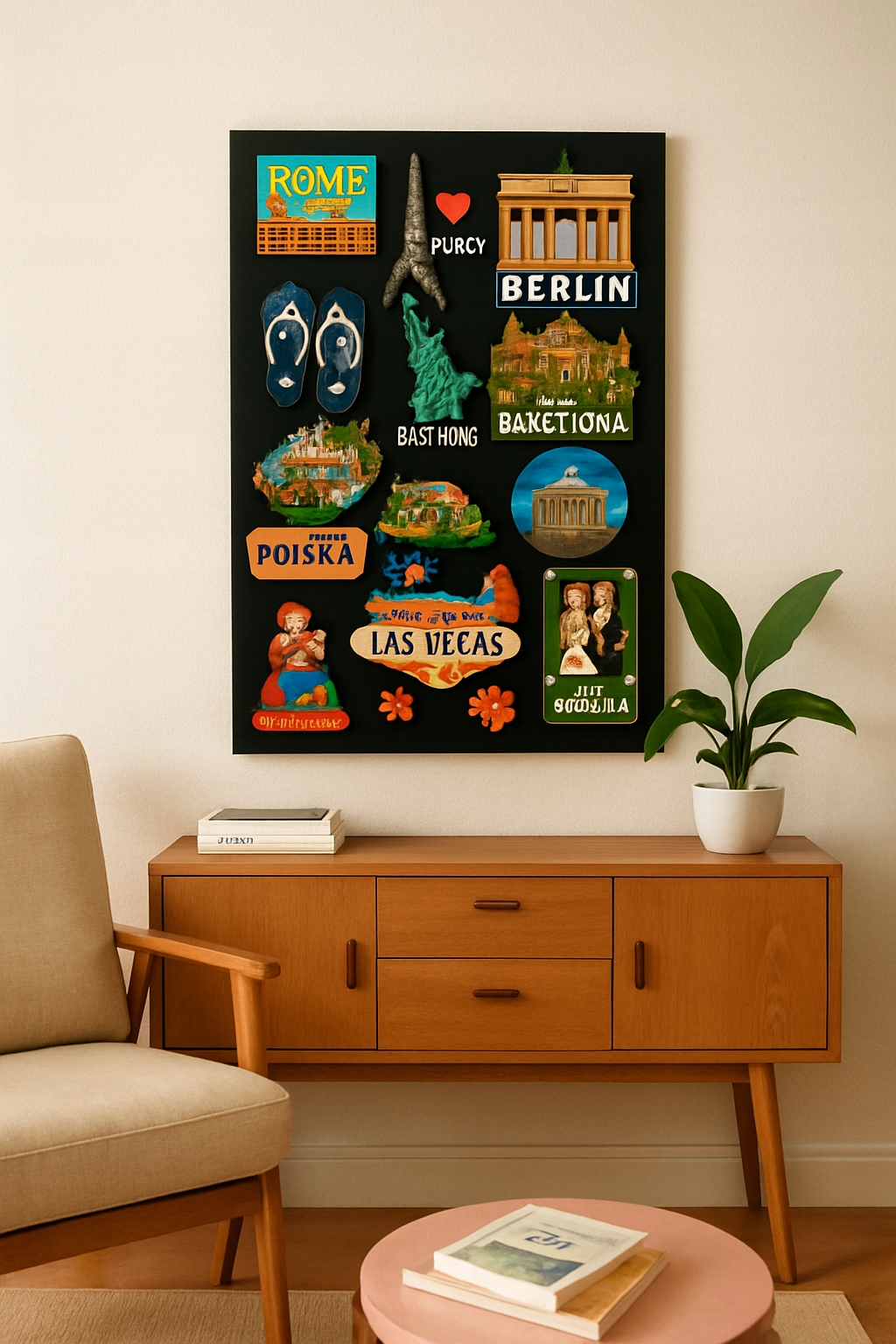 ⭐Ta funkcjonalna i dekoracyjna tablica zapewnia doskonałe miejsce na eksponowanie Twoich ulubionych wspomnień z różnych miejsc, które odwiedziłeś.