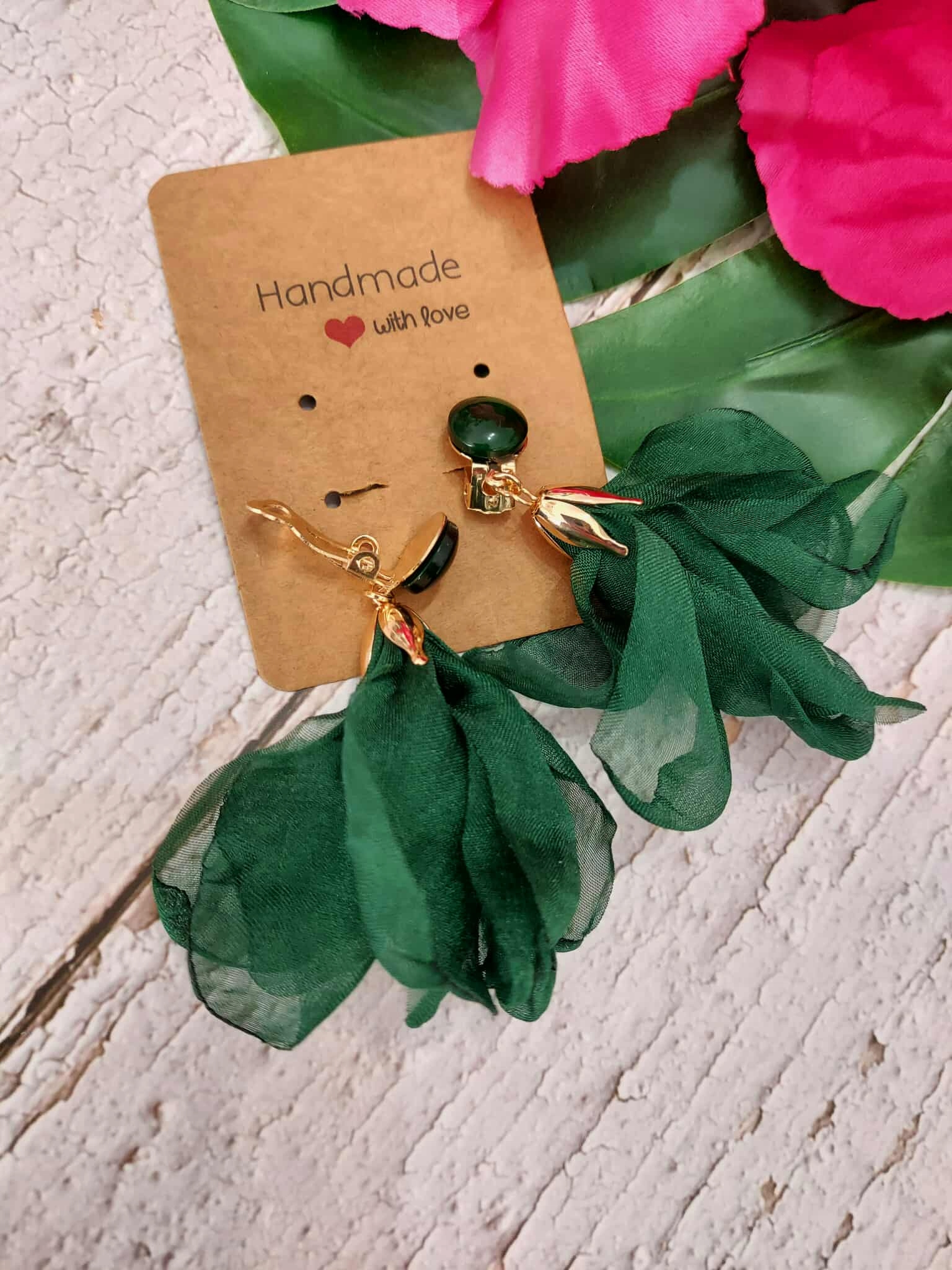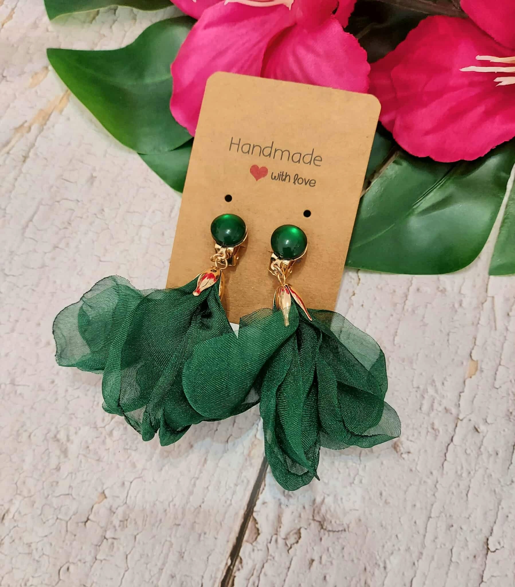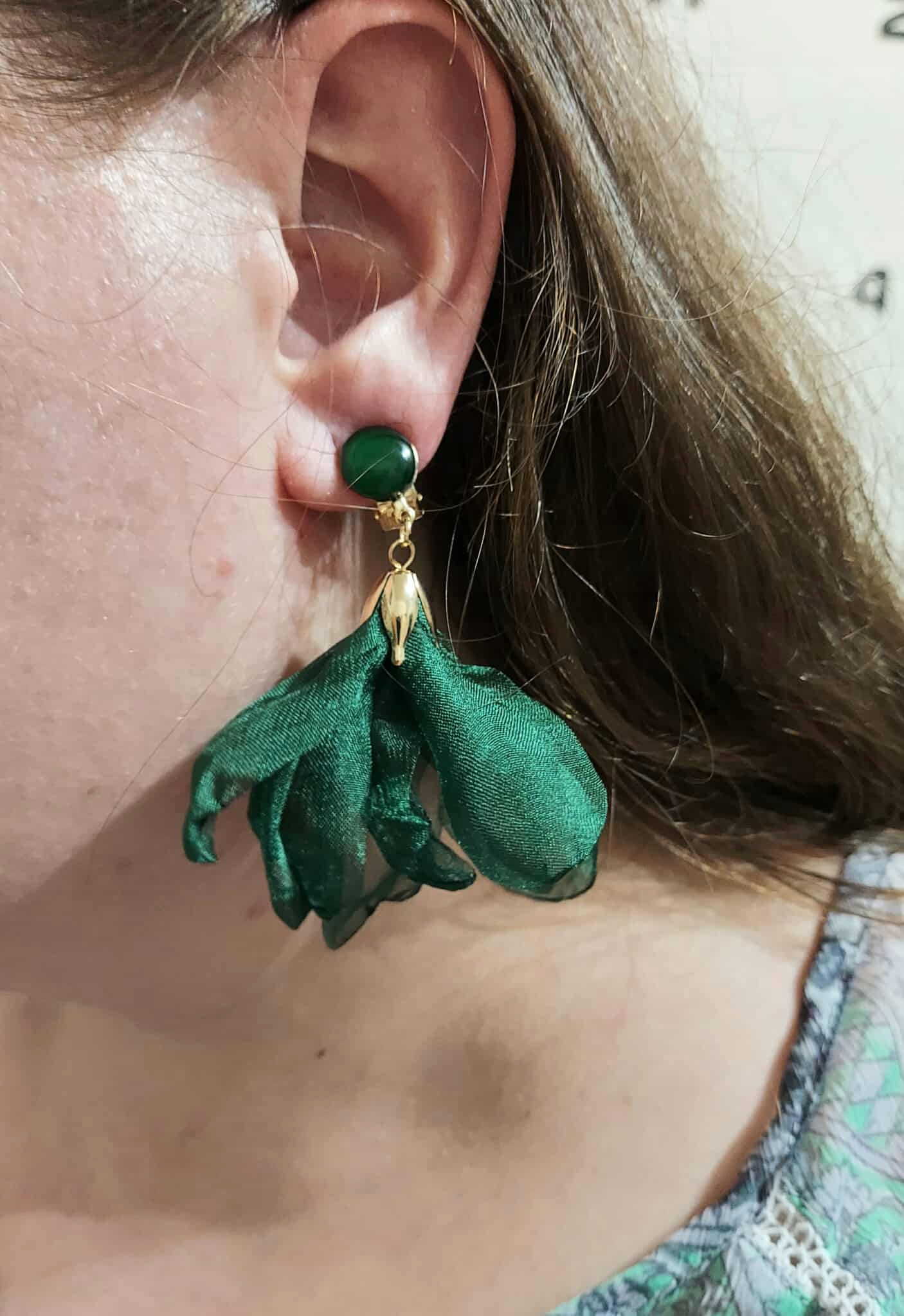 Klipsy ręcznie wykonane wiszące jedwabne kwiaty