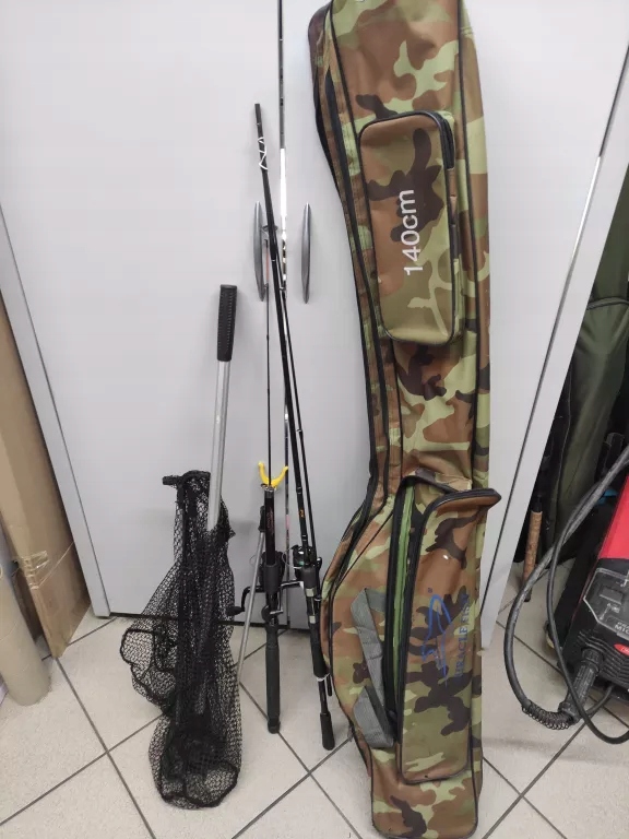 WĘDKI 2 SZT KOŁOWROTEK JAXON BONZO PRI 200 FD I PODBIERAK I POKROWIEC
