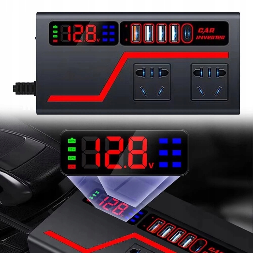 Zawartość opakowania: 1x 200 W samochodowy falownik z wyświetlaczem LED i 4 portami USB