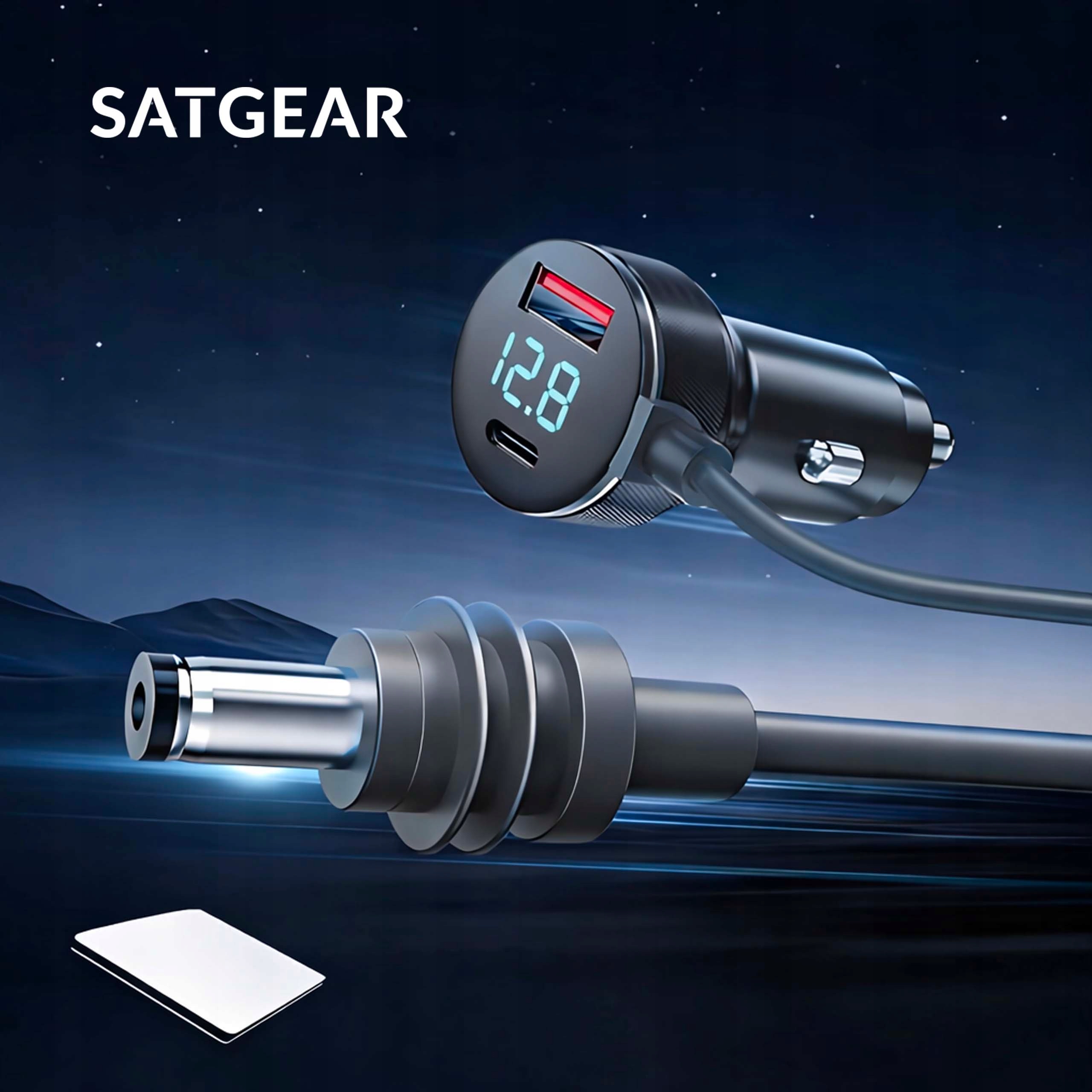 adowarka samochodowa 12–24V do Starlink Mini z wyświetlaczem napięcia