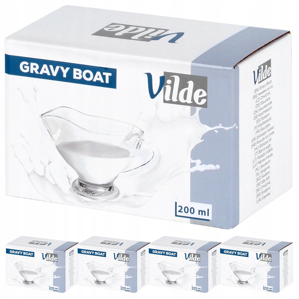 Zestaw pięciu szklanych sosjerek doskonale sprawdzi się do podawania sosów do mięs, warzyw i ryb, sosów deserowych, polew do ciast czy gofrów, a także jako dzbanuszek na mleko bądź śmietankę do kawy. Łączą klasyczny design z wygodą użytkowania i harmonijnie komponują się z każdą zastawą stołową. Oryginalny produkt marki Vilde. Wyprodukowano zgodnie z europejskimi standardami.