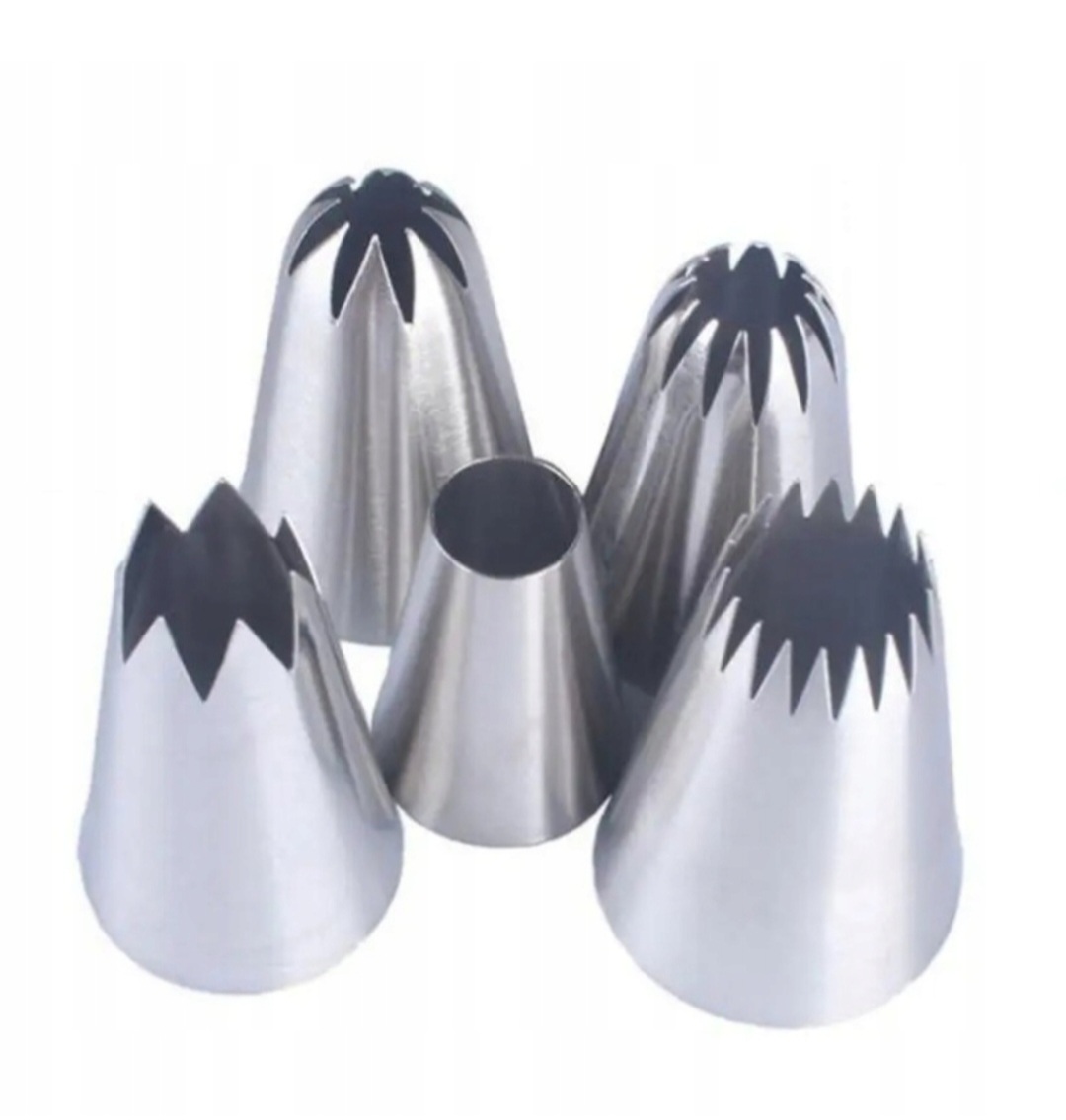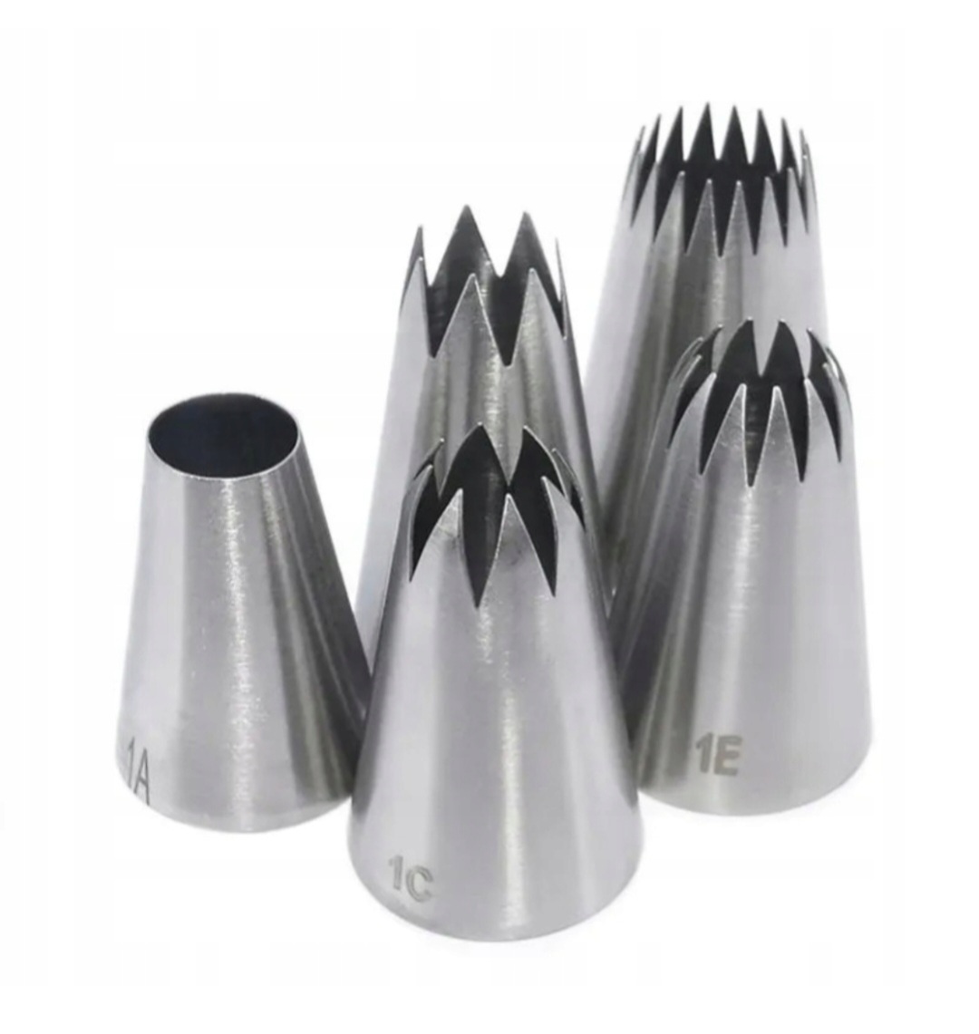 Metalowe końcówki do efektownej i szybkiej dekoracji ciast i kremów.
