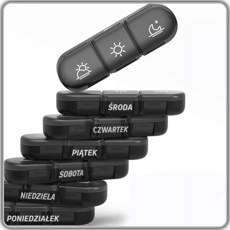 ⭐ Organizer posiada siedem mniejszych pojemniczków opisanych dniem tygodnia w języku polskim!