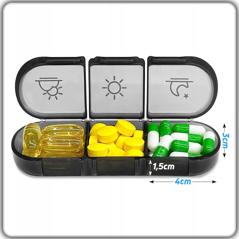 ⭐ Każdy mniejszy pojemniczek ma trzy przegrody, przeznaczone na trzy pory dnia (rano, południe, wieczór)
