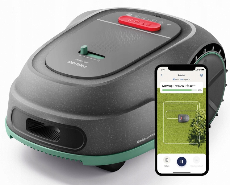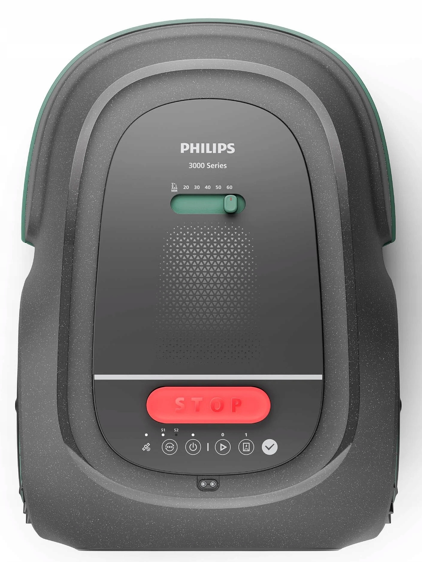 Благодаря встроенному датчику осадков робот-косилка Philips он автоматически возвращается на зарядную станцию во время дождя. После того, как дождь прекратился, он возобновляет себя косил в том месте, где остановился.