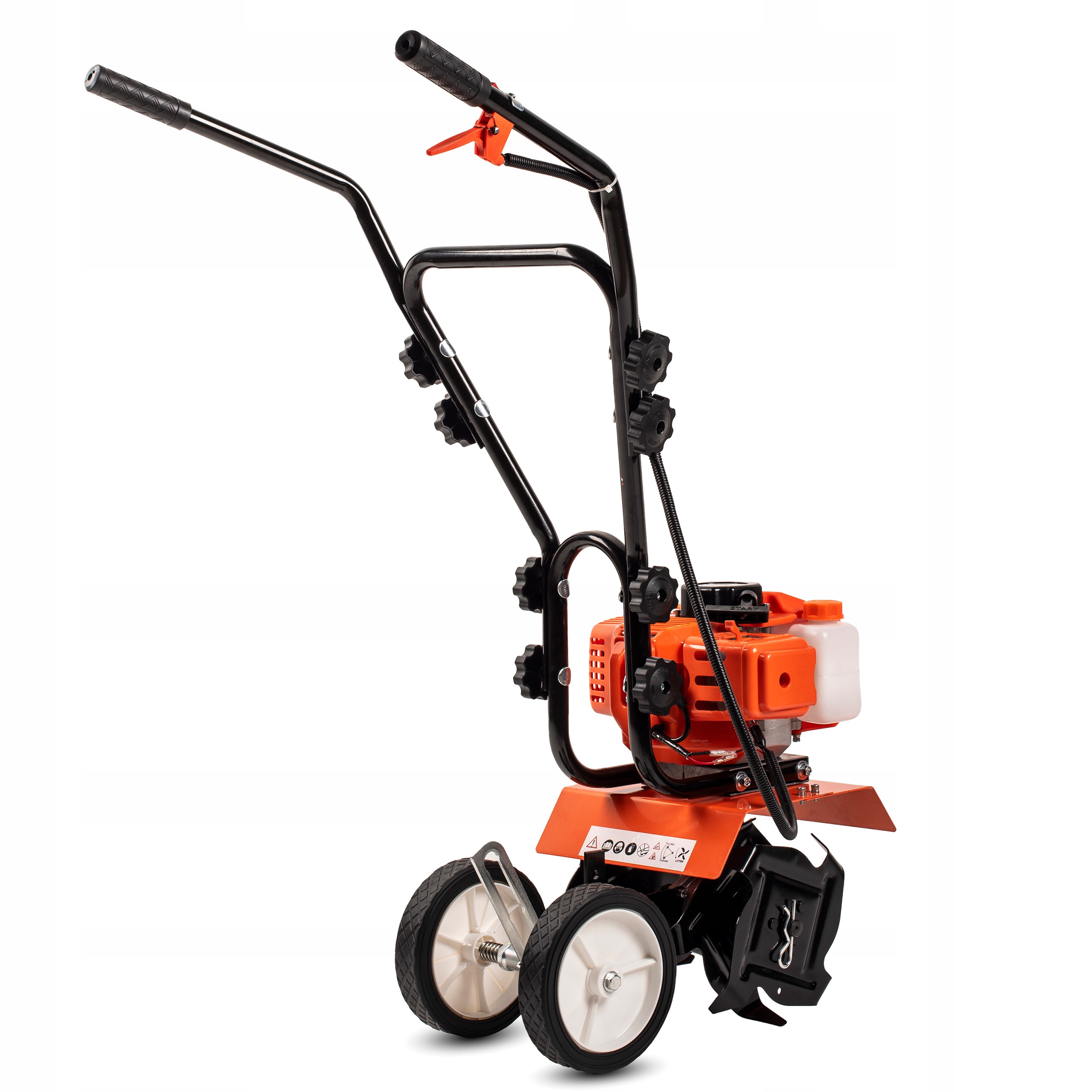 Wyłącznik bezpieczeństwa oraz manetka gazu umieszczone są tak, aby maksymalnie ułatwić użytkowanie glebogryzarki.