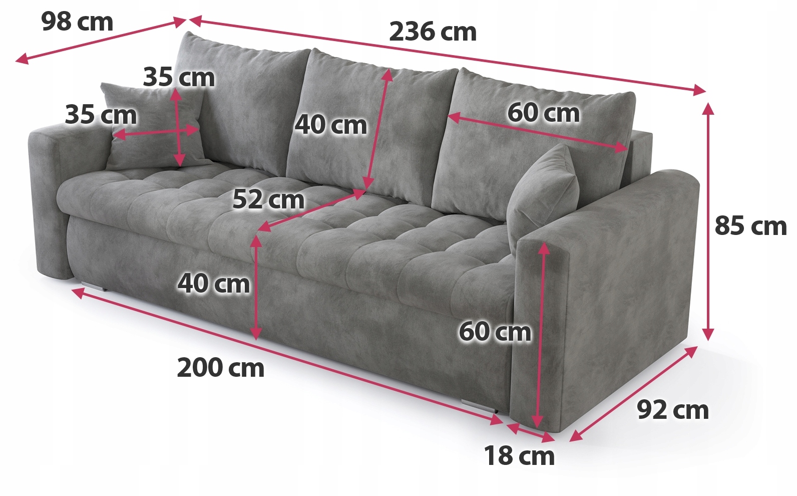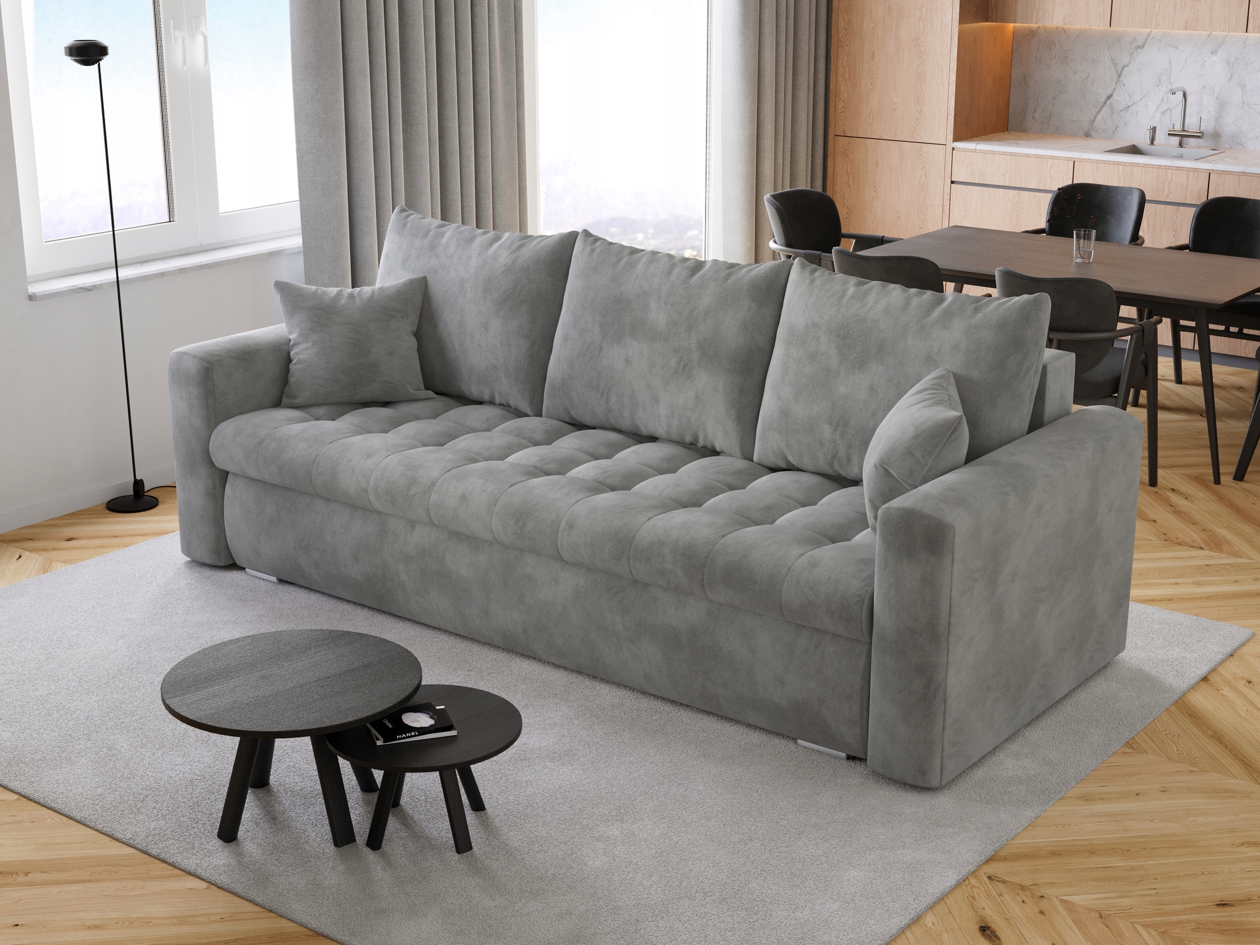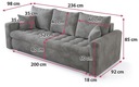 Kanapa LUIS posiada funkcję spania o powierzchni 140x200 cm, która jest rozkładana za pomocą automatu DL. Kanapa posiada sprężyny bonell zastosowane w siedzisku, pod którym znajduje się pojemnik na pościel.