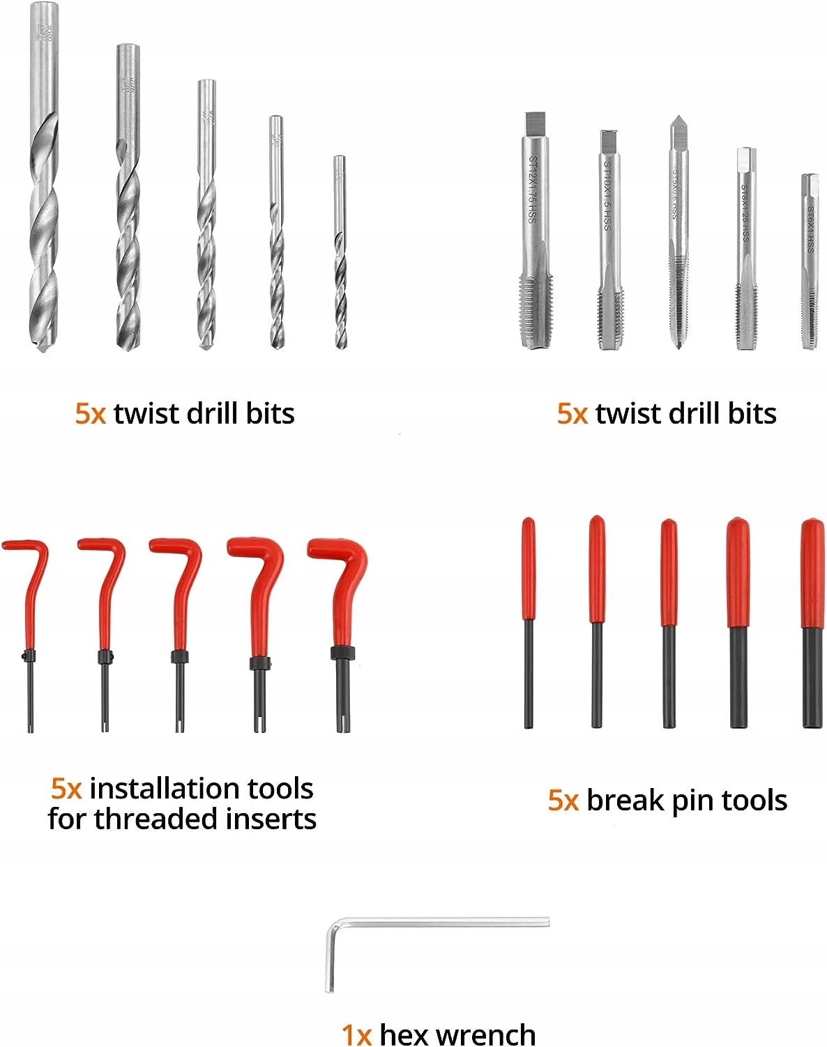 Nadaje się do M5, M6, M8, M10 i M12, zapewnia mocniejszy gwint wewnętrzny w miękkich metalach i chroni gwint przed zużyciem i uszkodzeniami.