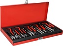 Profesjonalny zestaw do naprawy gwintów, idealny do regeneracji najbardziej popularnych gwintów w miękkich metalach. Wykonany z hartowanej stali HSS4341, zestaw zapewnia długotrwałą wytrzymałość i precyzyjne rezultaty. Wszystko w eleganckiej, solidnej metalowej skrzynce z wyprofilowanym plastikiem w środku.