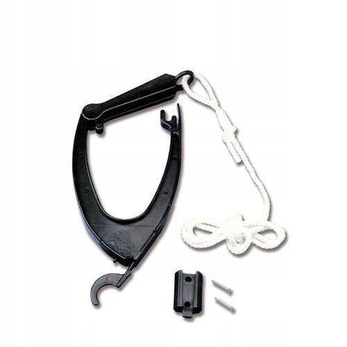 Praktyczny przyrząd do nabiegowego chwytania bojki i przewlekania liny cumowniczej. Nasuwany na uchwyt przykręcany pod grotem bosaka. Wykonany z mocnego plastiku.