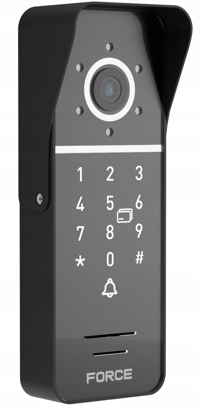 Монтируется на поверхности односемейная элегантный дизайн. Внешняя панель изготовлена из алюминиевого сплава, характеризующегося высокая степень герметичности IP65, что подтверждает Кроме того, дверной проем защищен изображение в разрешении 140º, камера имеет функцию обнаружения движения.