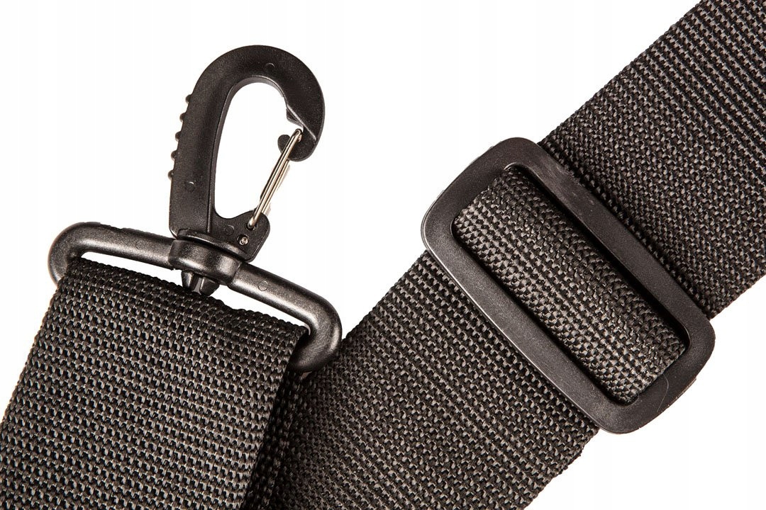 Torba posiada regulowany pasek na ramię, uchwyt do przenoszenia oraz zaczepy na pasek ułatwiające użytkowanie.