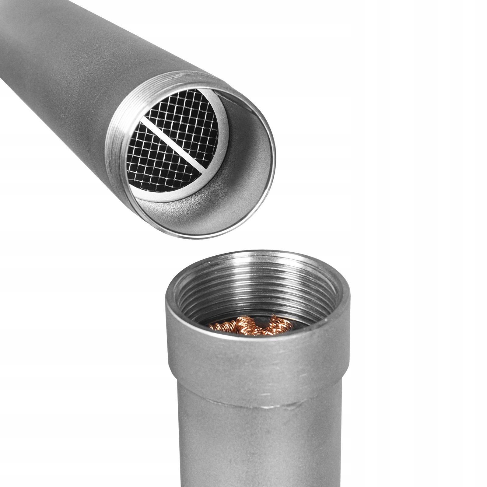 Klient w komplecie otrzymuje sprężynki pryzmatyczne miedziane oraz wypełnienie nierdzewne. Sprężynki pryzmatyczne zwiększają powierzchnię kontaktu par destylatu wydobywającego się z pojemnika ze skroplonym destylatem spływającym w dół kolumny.