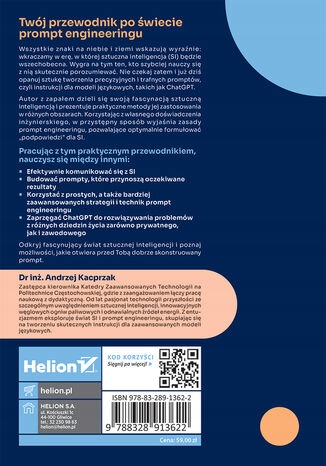 Autor z zapałem dzieli się swoją fascynacją sztuczną inteligencją i prezentuje praktyczne metody jej zastosowania w różnych obszarach. Korzystając z własnego doświadczenia inżynierskiego, w przystępny sposób wyjaśnia zasady prompt engineeringu, pozwalające optymalnie formułować "podpowiedzi" dla SI.