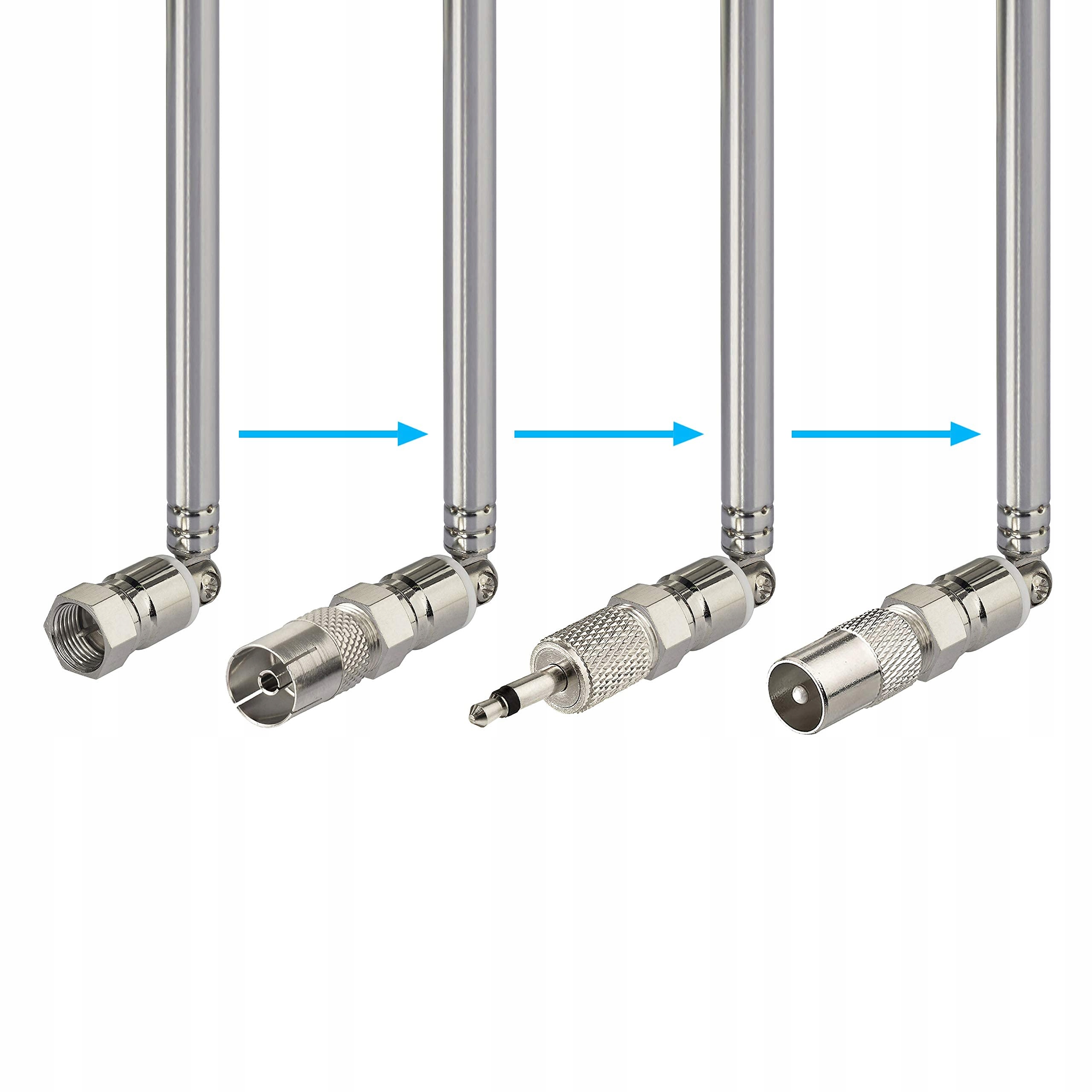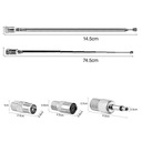 【Uniwersalna kompatybilność】W skład zestawu wchodzi teleskopowa antena radiowa o długości 76 cm ze złączem F-male i trzema adapterami (PAL męski, PAL żeński i interfejs 3,5 mm), co zapewnia kompatybilność z szeroką gamą urządzeń.