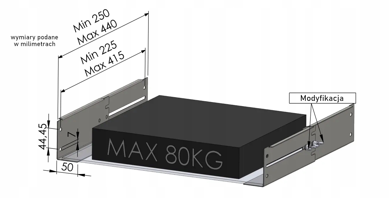 Szyna montażowa rack na ciężki sprzęt Heavy-S to praktyczne rozwiązanie dla osób poszukujących solidnego sposobu przechowywania cięższych przedmiotów. W zestawie znajdziesz komplet 2 sztuk o imponującej nośności aż do 80 kg! Te wytrzymałe szyny idealnie pasują do szaf o głębokości 400-600 mm i oferują regulowaną głębokość użytkową od 250 do 450 mm. Montaż jest łatwy, a solidna konstrukcja gwarantuje długotrwałą trwałość. Uporządkuj swoją przestrzeń dzięki Szynie Sprzętowej Heavy-S