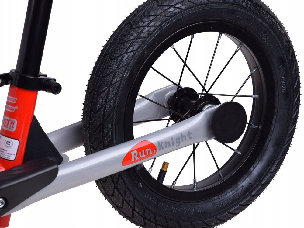 Rowerek biegowy RUN LITTLE KNIGHT pompowane koła 12cal RoyalBaby to lekki wygodny jeździk w kolorze czerwono - srebrnym. Idealnie sprawdzi się dla dzieci już od 3 roku życia. Rowerek biegowy wprawiany jest w ruch poprzez odpychanie się dziecka nóżkami. W trakcie zabawy dziecko będzie ćwiczyło swój zmysł równowagi i ogólną koordynację ruchową, umiejętności tak niezbędne do późniejszej jazdy na rowerze z pedałkami. Dzięki regulowanemu siodełku rowerek będzie rósł razem z naszym małym rowerzystą. Rama rowerka została wykonana z aluminium oprócz przednich oraz tylnych widełek. Dodatkowo na tylnych widełkach zostały umieszczone plastikowe podnóżki, umożliwiające oparcie nóżek podczas jazdy, co zapobiegnie trzymaniu ich w powietrzu. Jego lekka ALUMINIOWA konstrukcja oraz ogranicznik skrętu w kierownicy zapewni maluchowi bezpieczne manewrowanie podczas jazdy. RoyalBaby to marka rowerów przeznaczona dla dzieci. Produkty tej marki charakteryzują się wysoką jakością wykonania, atrakcyjnym wyglądem oraz innowacyjnością. RoyalBaby gwarantuje bezpieczną i przyjemną jazdę każdemu dziecku.