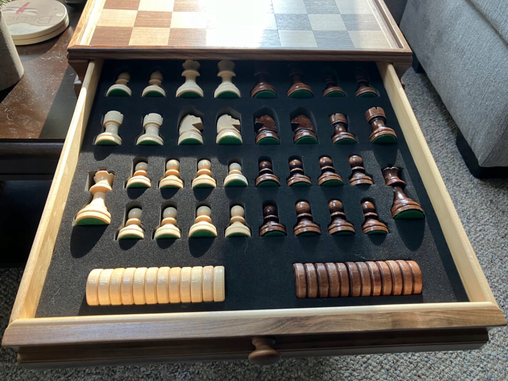 ✨ Klasyczny zestaw szachów i warcabów ma konstrukcję tacy, z 1 dużą szufladą do spersonalizowanego przechowywania elementów, każdy element jest przechowywany oddzielnie, bez kolizji z innymi, zapobiegając ocieraniu się elementów i aby zawsze zachować porządek, łatwy dostęp, praktyczny design, aby spełnić Twoje potrzeby w grze