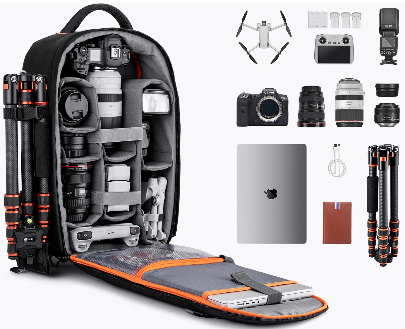 Trzymaj w plecaku 2 aparaty + 4 dodatkowe obiektywy + statyw + drona + laptop 15,6'' i inne akcesoria!