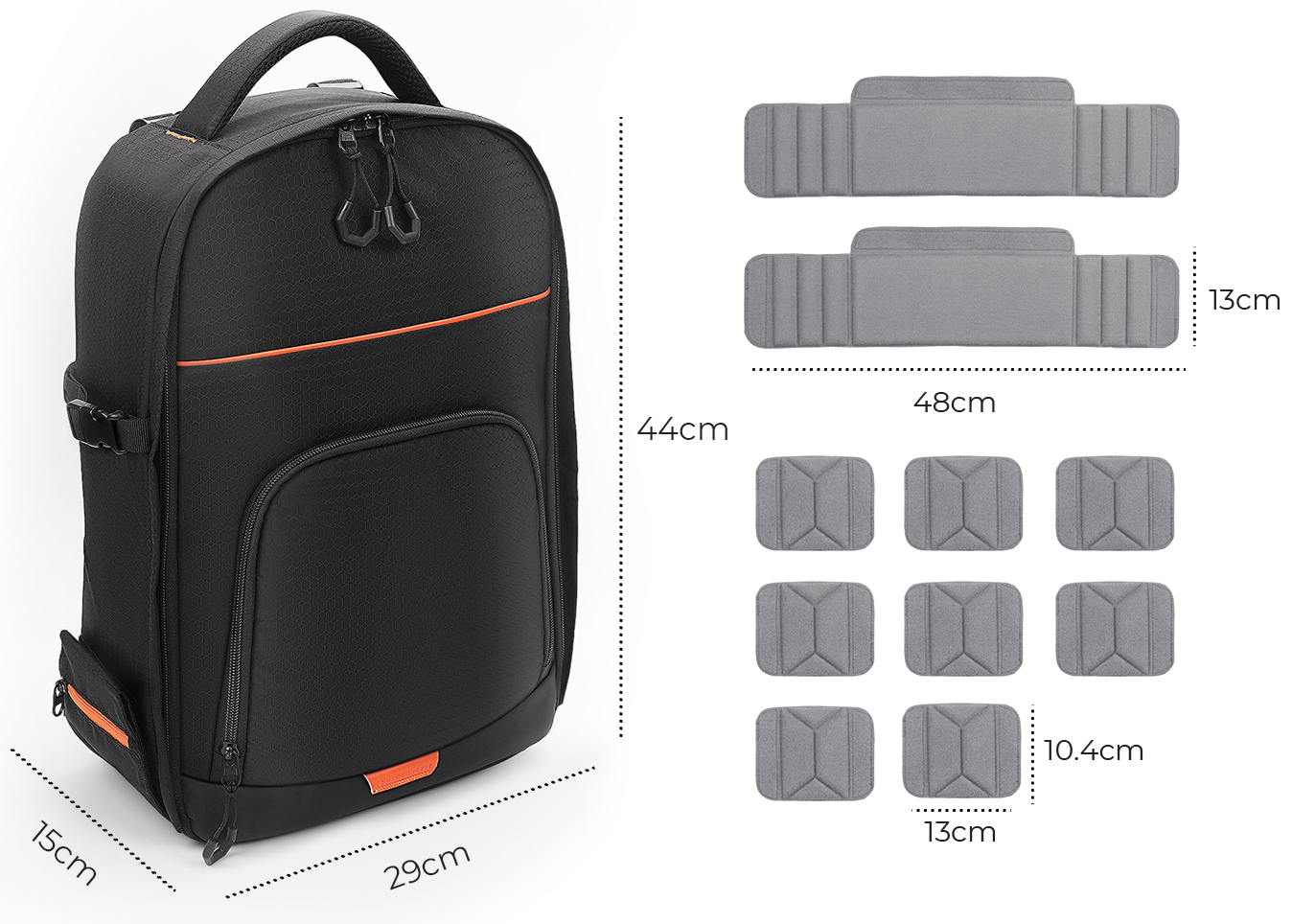 W plecaku zmieścisz 2 aparaty, 4 obiektywy, laptopa 15,6'', drona oraz inne niezbędne akcesoria fotograficzne.