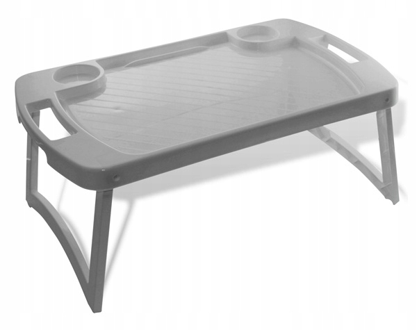 DUŻY STOLIK z UCHWYTAMI na SKŁADANYCH NÓŻKACH ze specjalnym DODATKOWYM MIEJSCEM na TABLET lub KOMÓRKĘ i 2 WGŁĘBIENIAMI na KUBKI