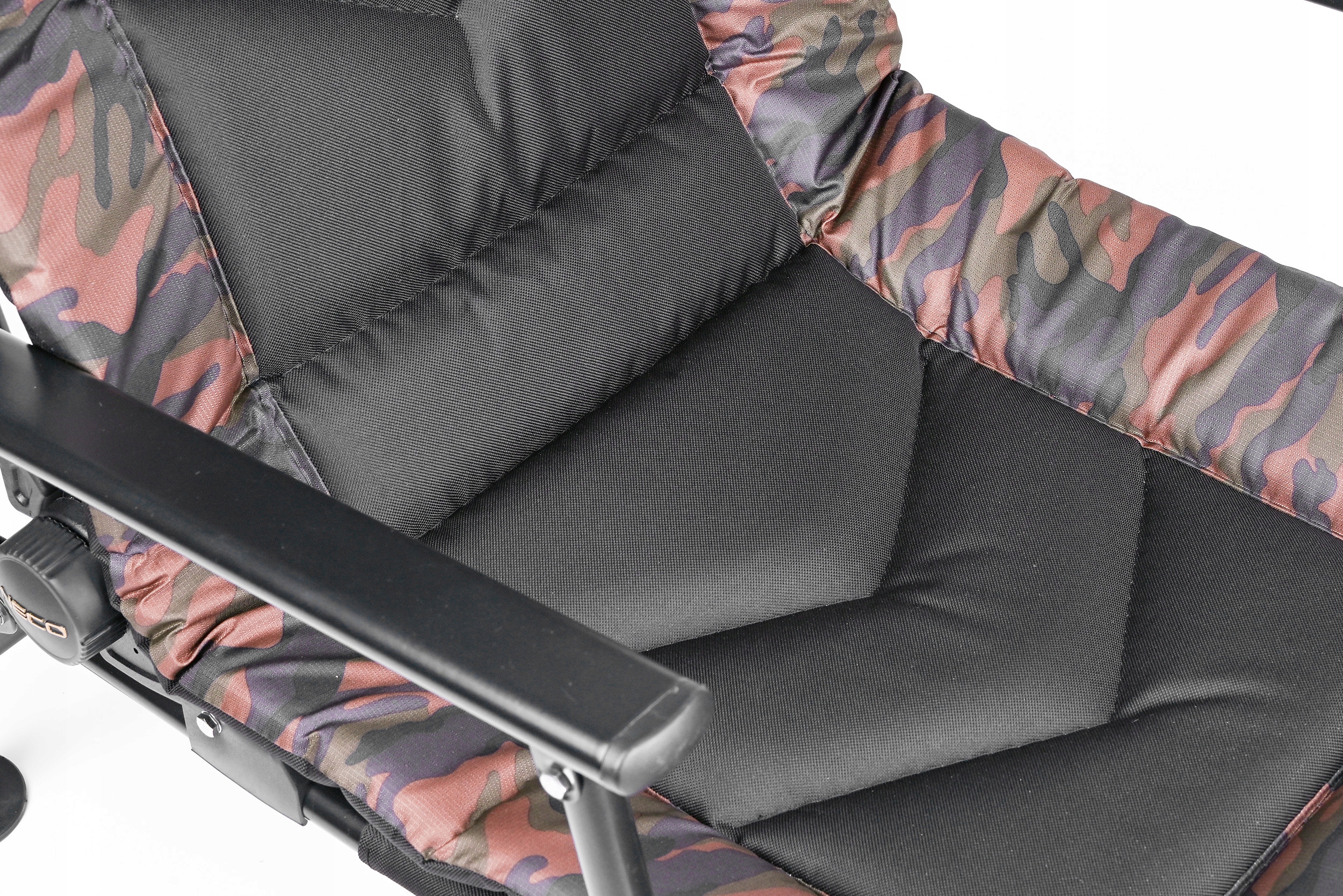 Solidne pokrętła umożliwiają szybkie i pewne ustawienie oparcia pod idealnym kątem, co gwarantuje wygodę podczas wielogodzinnego wędkowania.