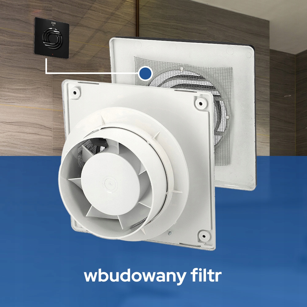 Wentylator poprawia jakość powietrza, eliminuje nadmiar wilgoci i nieprzyjemne zapachy, gwarantując komfortowe warunki codziennego użytkowania.