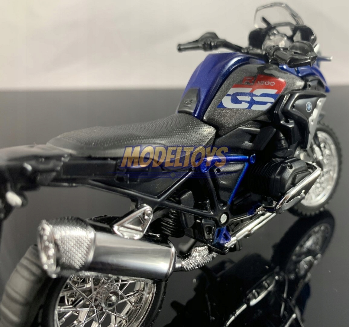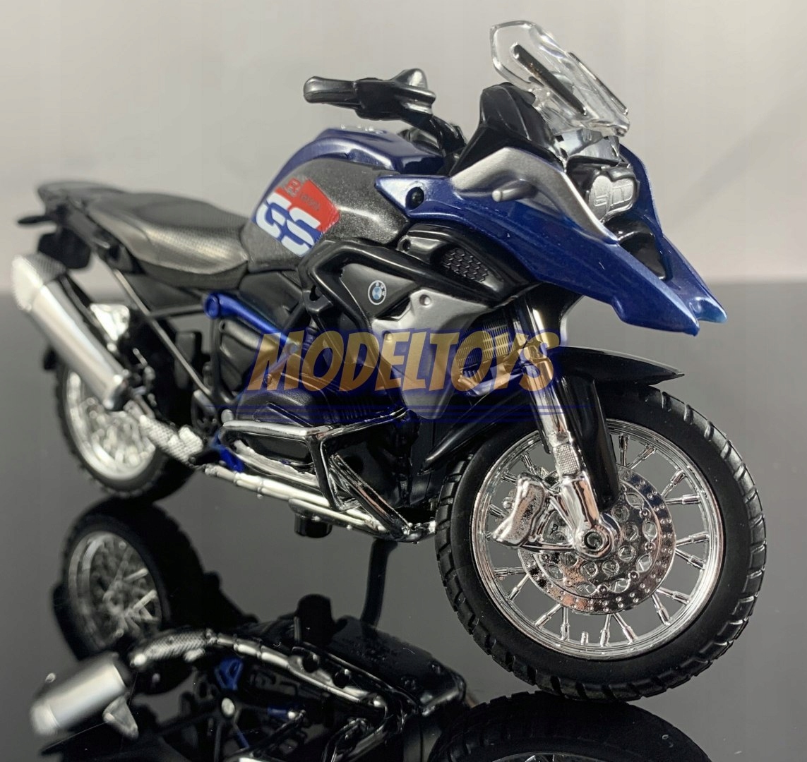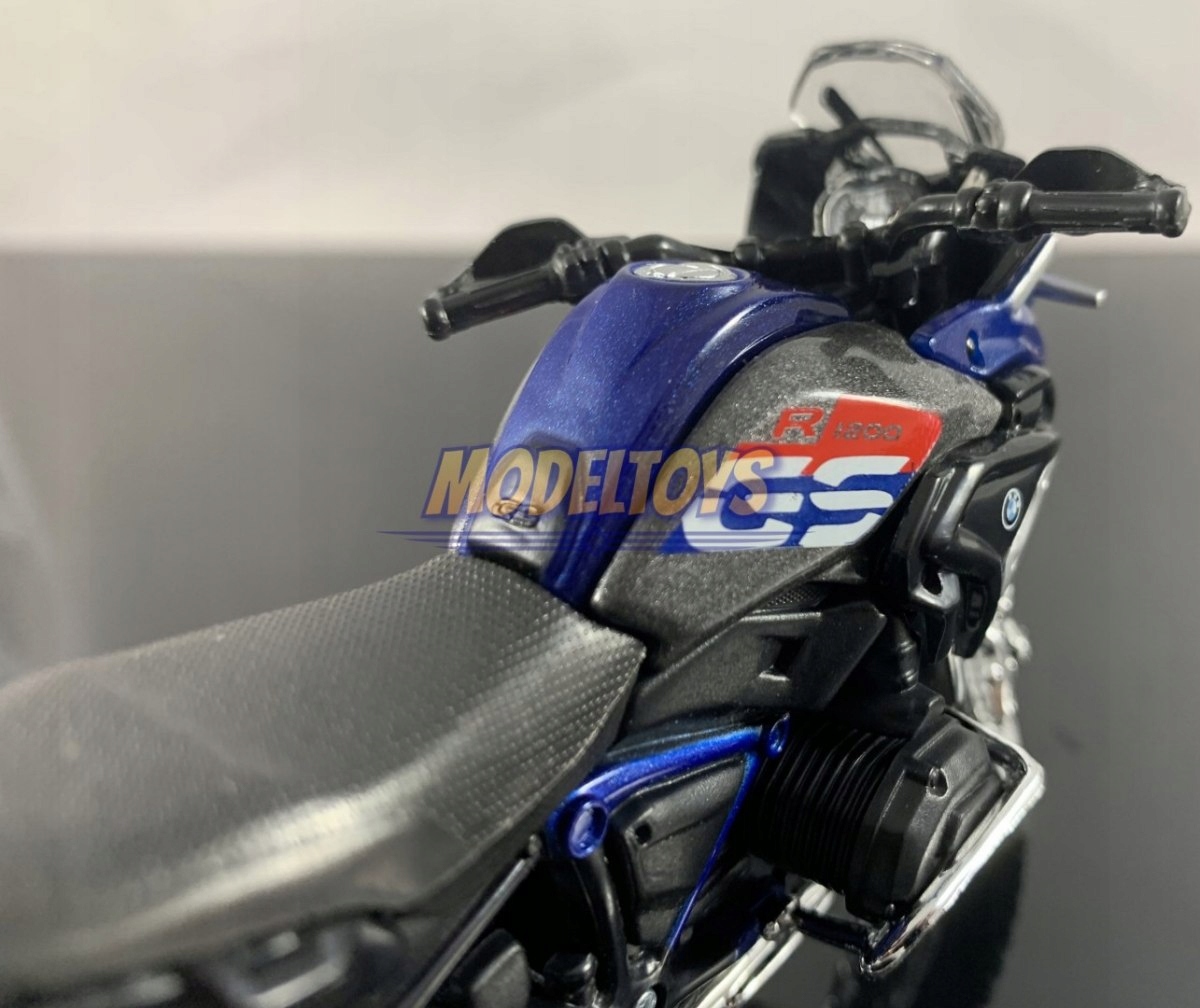 Model motocykla BMW charakteryzuje się dbałością o szczegóły. Posiada ruchome elementy: koła, kierownicę, tylny wahacz i stopkę boczną.