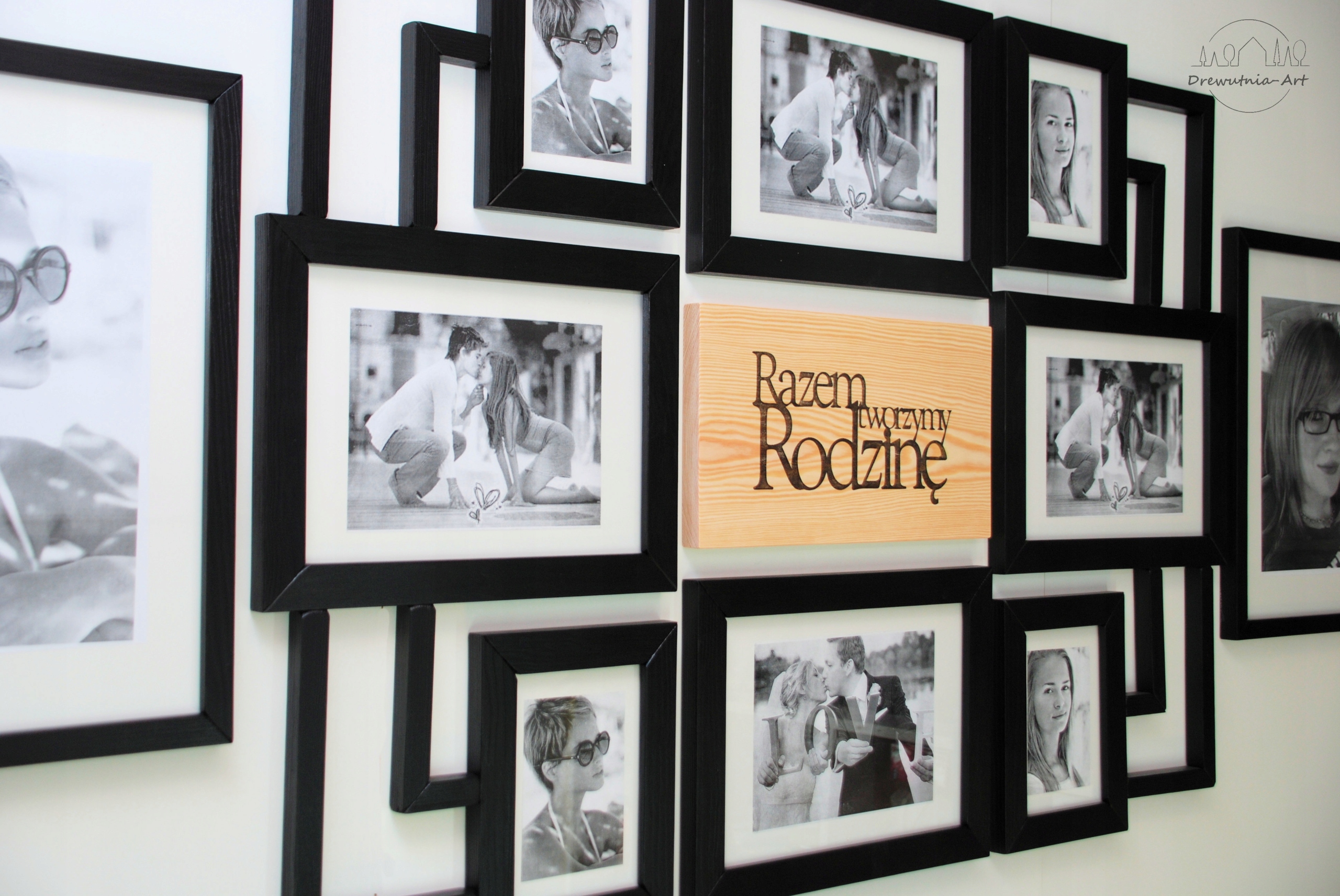 Zestaw 7 części, pasujących na zdjęcia formatu 4x(13x18cm), 4x A4(21x29,7cm),2x(30x40cm) i deski z typografią (nadrukiem który można wykonać na indywidualne zamówienie lub pozostawić bez zmiany).