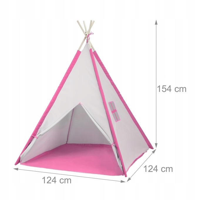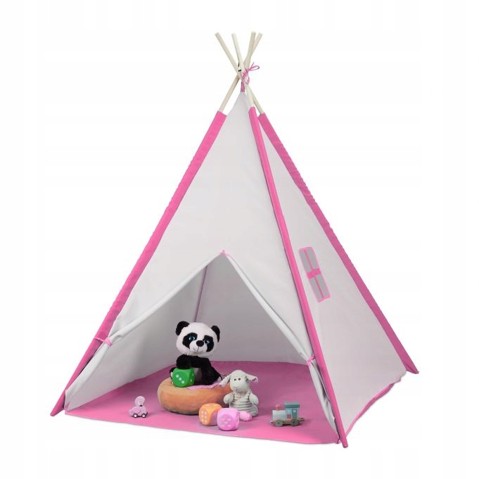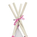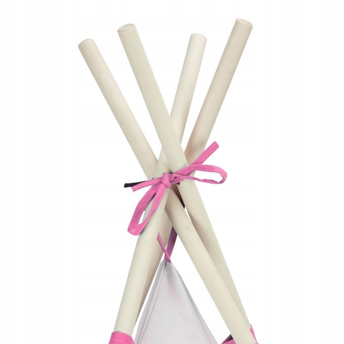 Nasz ozdobny namiot tipi dla dzieci to idealne schronienie dla Twoich małych Indian. Domek teepee dla dzieci w biało-różowym kolorze przyciąga wzrok w każdym dziecięcym pokoju. Namiot tipi dla dzieci oferuje kreatywną i żywiołową zabawę. Przez duże wejście z przodu Twoje pociechy mogą swobodnie wchodzić do środka oraz wychodzić na zewnątrz. Wnętrze namiotu jest wyjątkowo wygodne. Nasz namiot teepee do zabawy składa się ze stabilnych drewnianych prętów montażowych oraz odpornego na rozerwanie lnianego pokrycia.