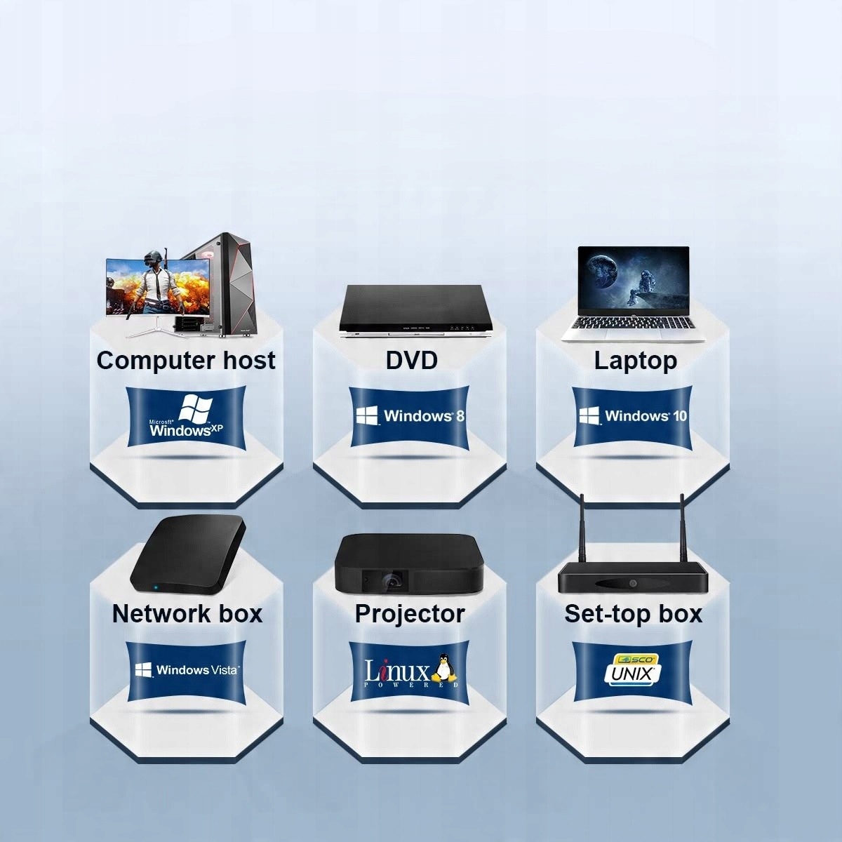 (Zestaw zawiera: KVM Switch-Host X1 / kabel USB-AB X2 / kabel HDMI X2 / Micro-USB X1 / podnóżek X4).