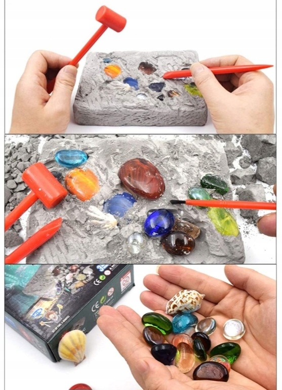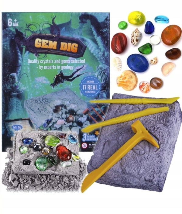Rozpocznij przygodę z archeologią i odkryj, co kryje się w gipsowej skale! Ten niezwykły zestaw wykopaliskowy to idealna propozycja dla małych odkrywców, którzy uwielbiają niespodzianki, przygodę i… klejnoty!