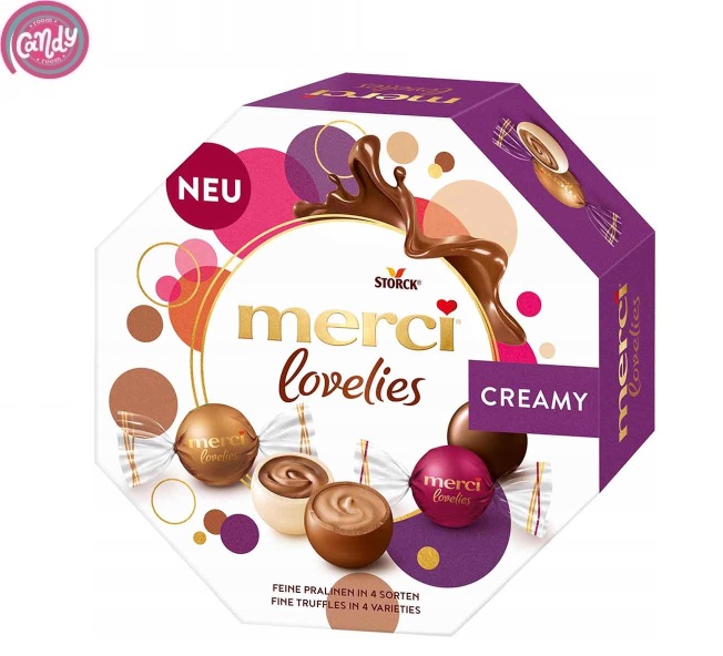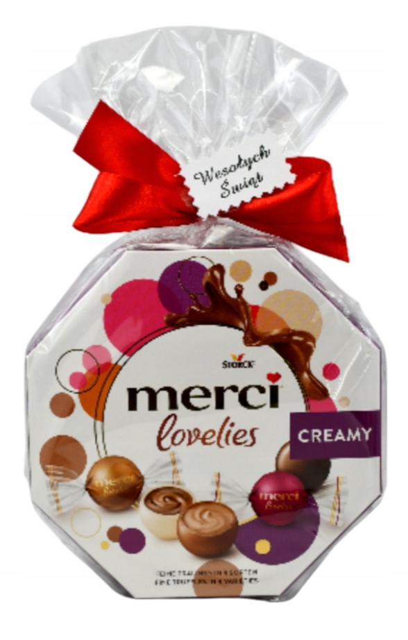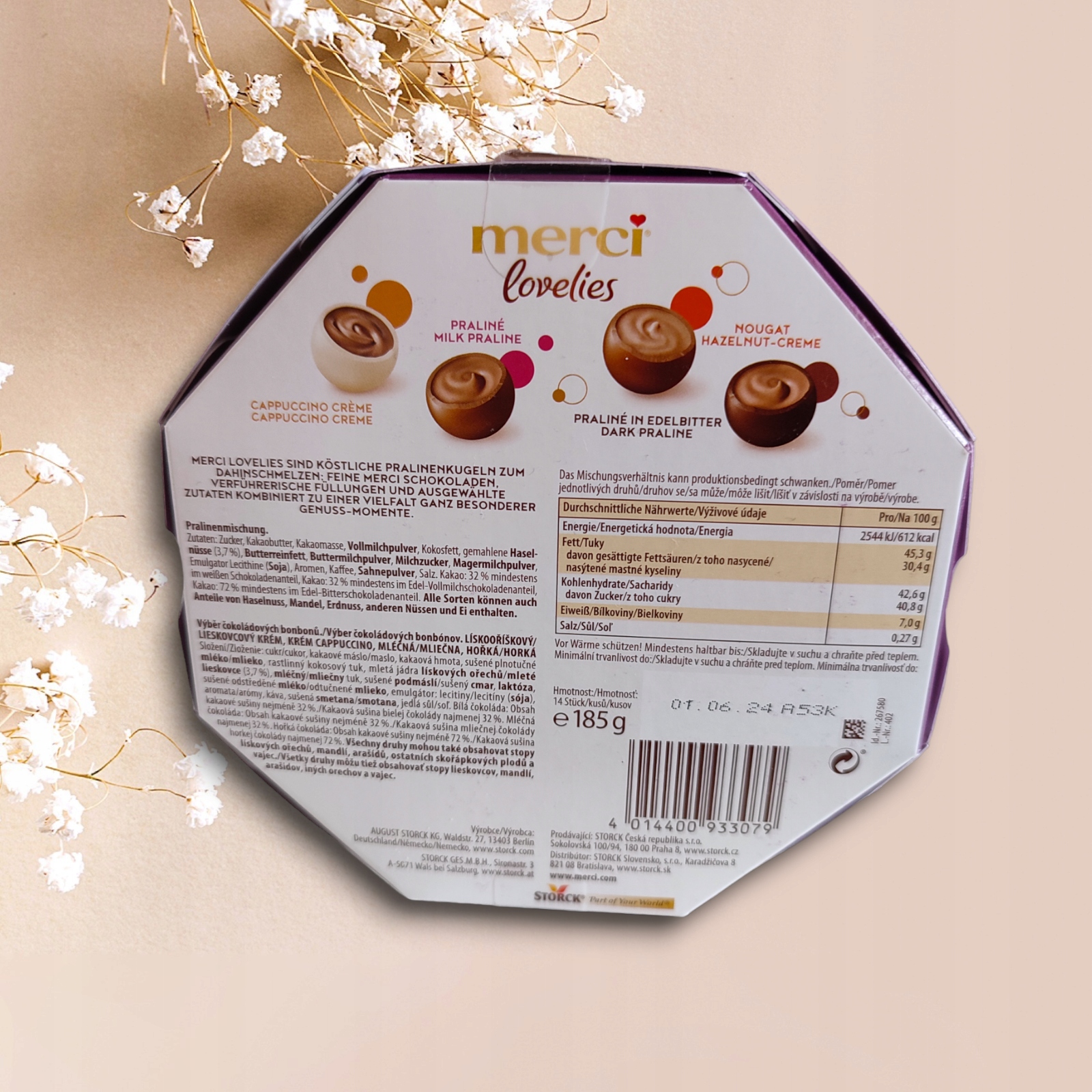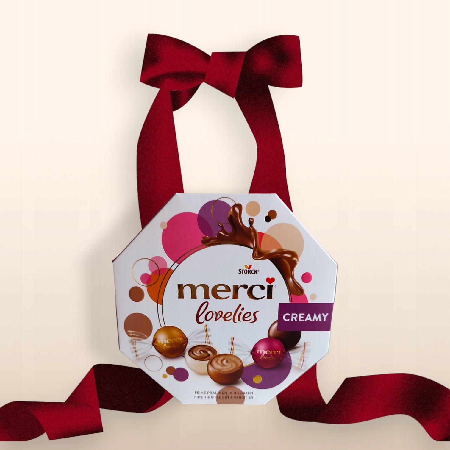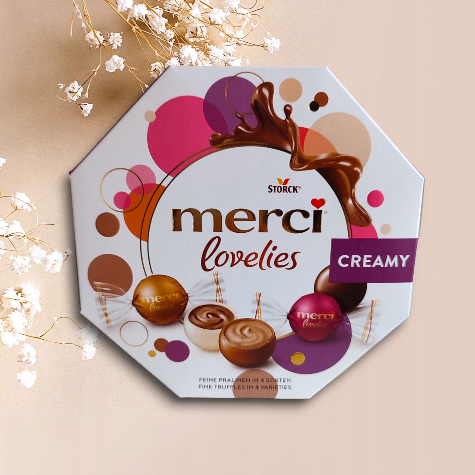 ✅ Praliny Merci Lovelies Creamy prezentują się elegancko i luksusowo, dzięki czemu są idealnym wyborem na prezent dla bliskiej osoby lub jako elegancki dodatek do świątecznego stołu.