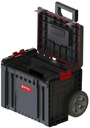 Qbrick System Pro Cart-это мобильная колесная коробка с телескопической алюминиевой ручкой, которая в то же время база для новой многомодульной и самой компактной линейки PRO. Коробка имеет большие колеса с резиновым покрытием, установленные на металлической оси. Кроме того, о безопасности перевозимых за инструментами ухаживают прочные застежки и боковые соединители из прочного полиамида. Венец в целом это водонепроницаемая и пыленепроницаемая конструкция, основанная на гибком уплотнении, установленном в крышка.