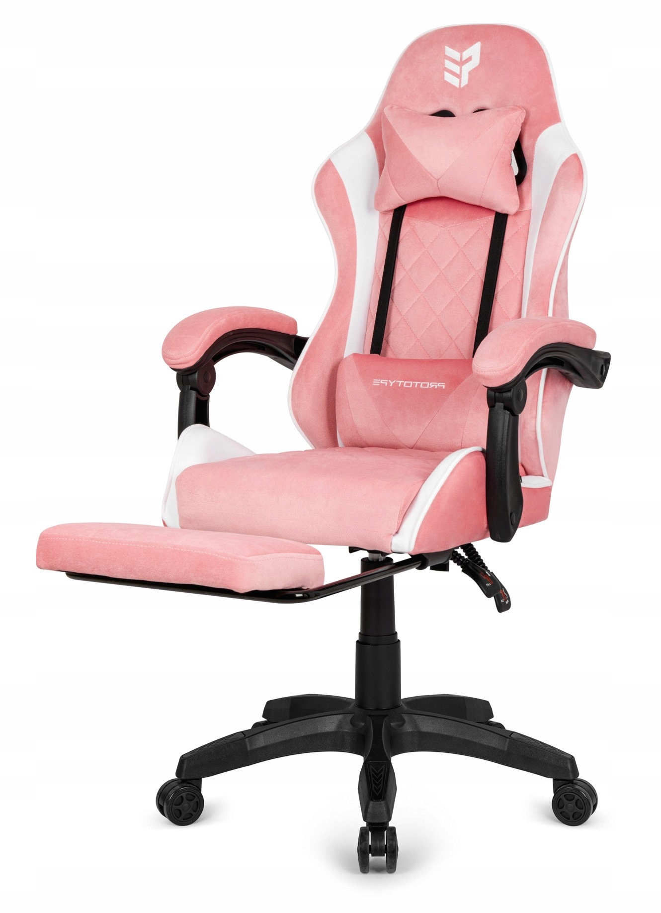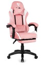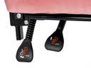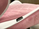 Tapicerowany różowo - białą welurową tkaniną z odchylanym oparciem i podnóżkiem.