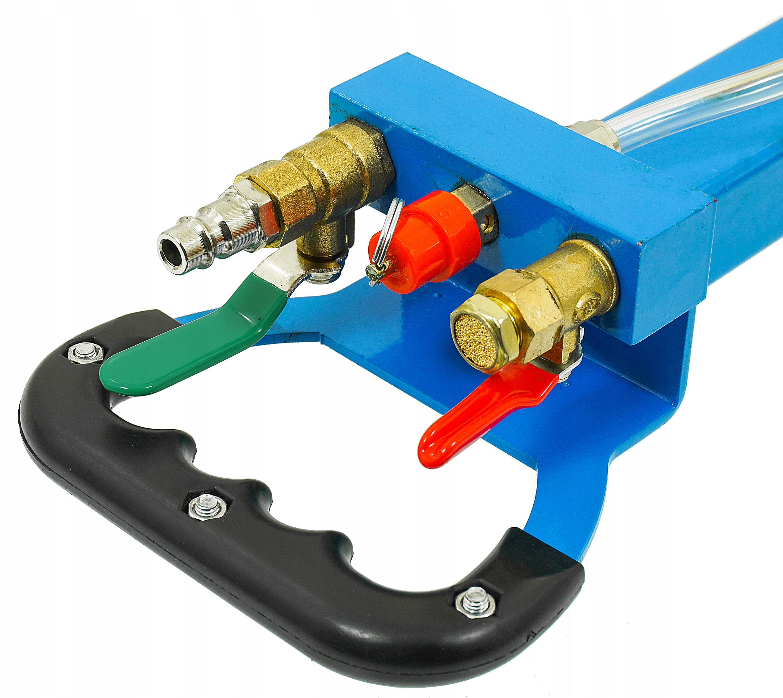 ⚡️ Wykorzystanie dwóch zaworów 3/8" - wlotowego i wylotowego - sprawia, że podnośnik po odcięciu źródła powietrza nie opada