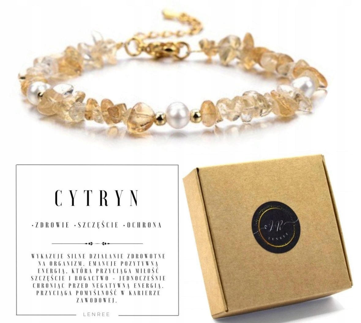 Bransoletka z cytrynem i perłą – stal chirurgiczna, eleganckie złote zapięcie 💛