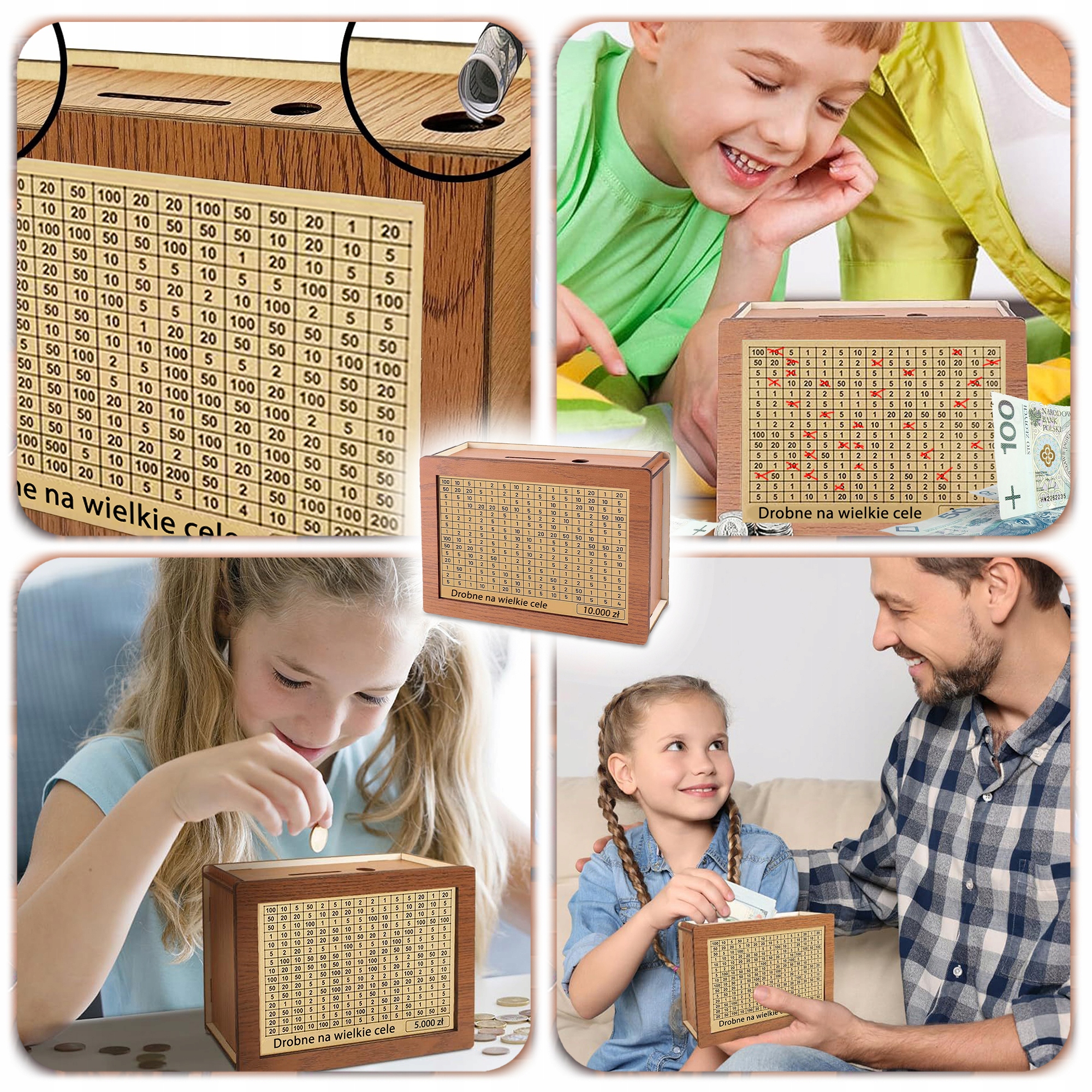 ➡️ Wykonana z najwyższej jakości drewna, nasza skarbonka łączy trwałość z estetyką. Jej minimalistyczny, nowoczesny design pasuje do każdego wnętrza – od klasycznych po nowoczesne.