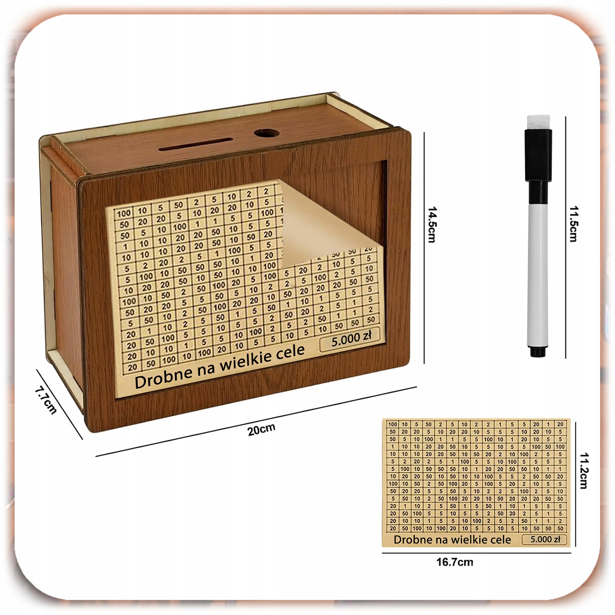 ✔️ Drewniana skarbonka (20 x 15 x 7 cm)