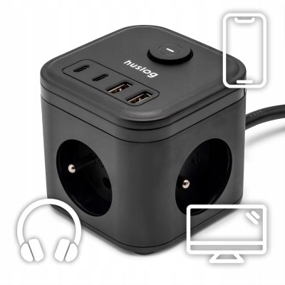 Pracujesz zdalnie i potrzebujesz niezawodnego rozwiązania do zasilania swoich urządzeń? Kostka zasilająca Huslog to doskonały wybór do home office! Dzięki 4 portom USB i 3 gniazdom sieciowym możesz jednocześnie podłączyć aż 7 urządzeń, takich jak laptop, telefon, tablet, lampka biurowa czy drukarka.