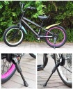Stopka podpórki wyposażona jest w wysokiej jakości, antypoślizgowe gumowe podkładki. Dzięki temu effectively zapobiega poślizgom nawet na mokrych powierzchniach, a także zapewnia stabilne podstawienie, co ułatwia dziecku wsiadanie i wysiadanie z roweru.